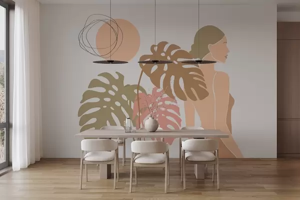zidne murale Silueta žene u blizini tropskog lišća w05192v1