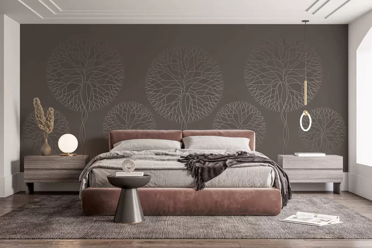 Zidne murale Fantastična linearna stabla s bujnim krošnjama u elegantnim moka tonovima br. w05213v1