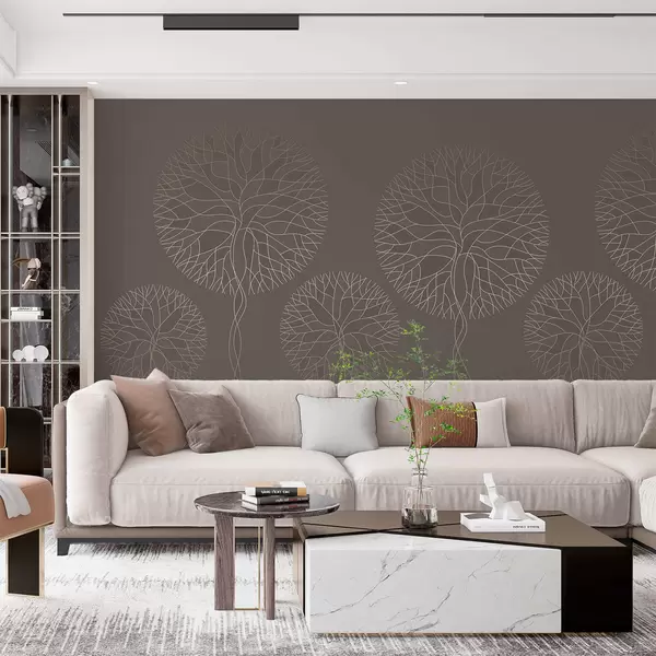 Zidne murale Fantastična linearna stabla s bujnim krošnjama u elegantnim moka tonovima br. w05213v1