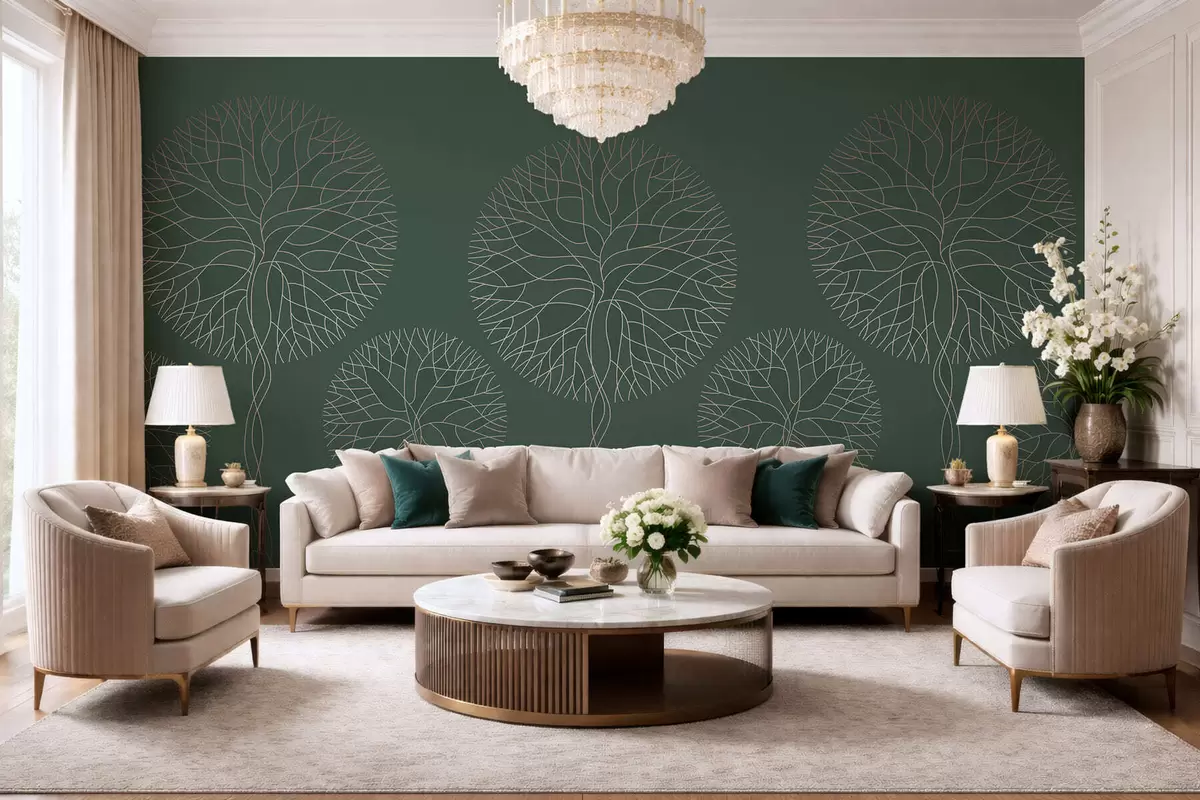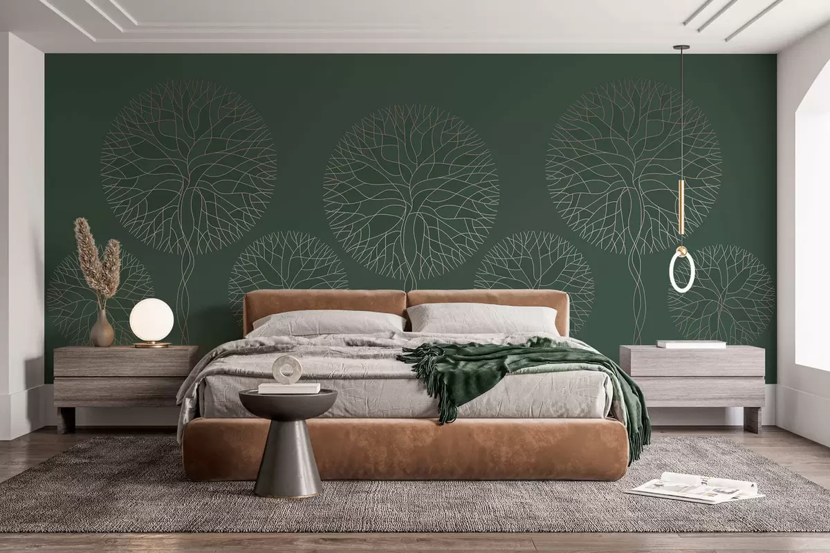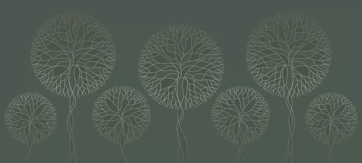 Zidne murale Fantastična linearna stabla s bujnim krošnjama u elegantnim tamnozelenim tonovima br. w05213v2