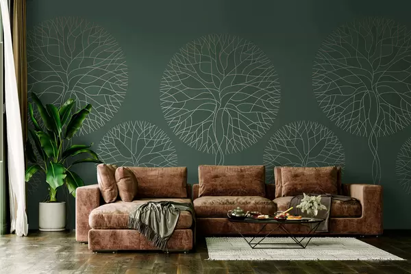 Zidne murale Fantastična linearna stabla s bujnim krošnjama u elegantnim tamnozelenim tonovima br. w05213v2