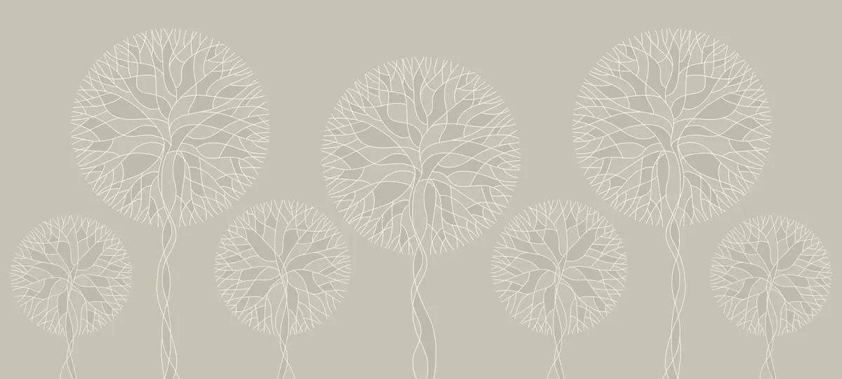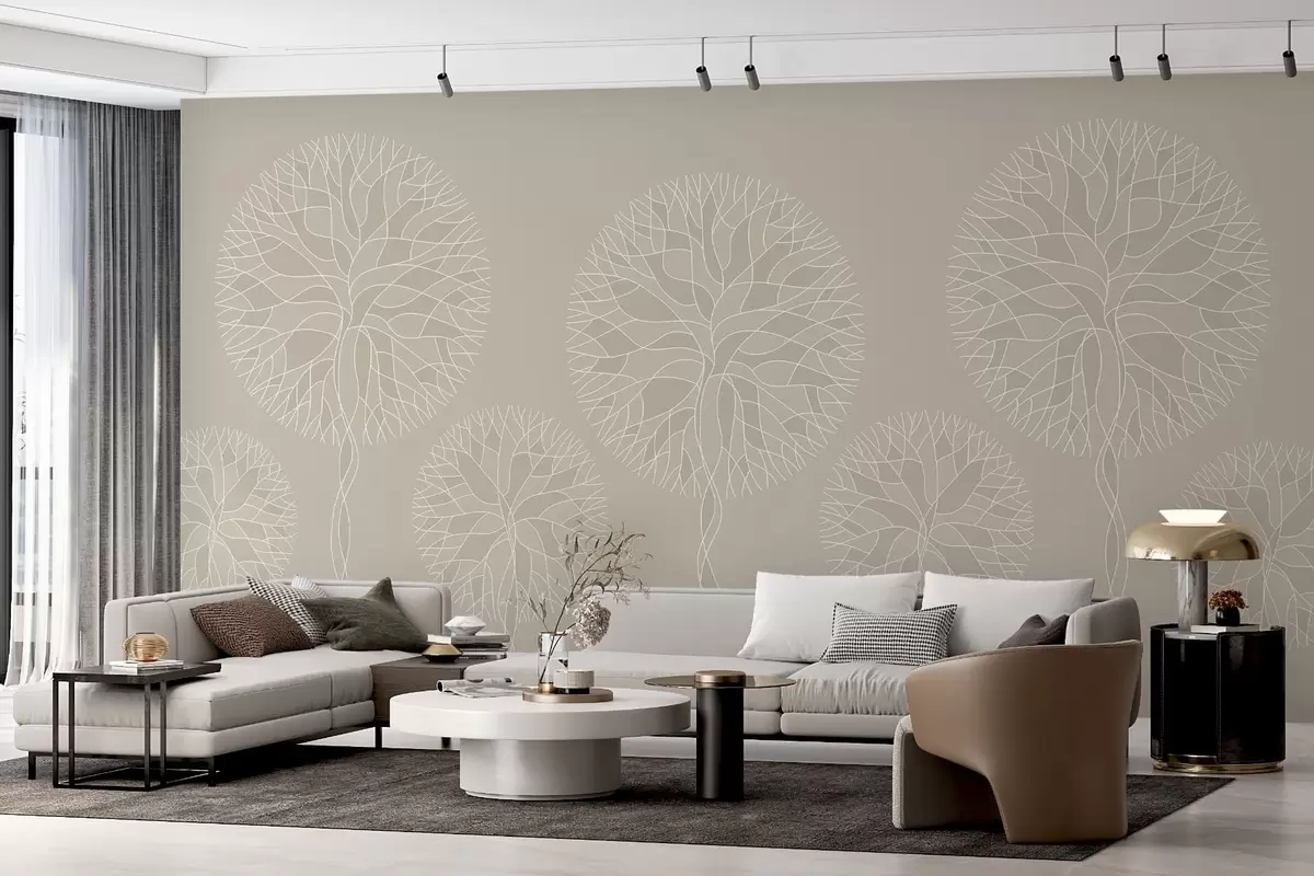 Zidne murale Fantastična linearna stabla s bujnim krošnjama u bež tonovima br. w05213v3