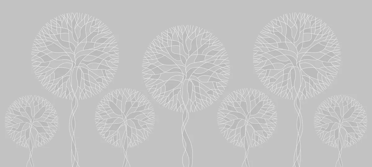 Zidne murale Fantastična linearna stabla s bujnim krošnjama u svijetlo sivim tonovima br. w05213v4
