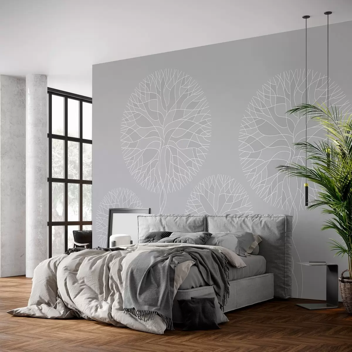 Zidne murale Fantastična linearna stabla s bujnim krošnjama u svijetlo sivim tonovima br. w05213v4