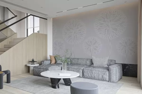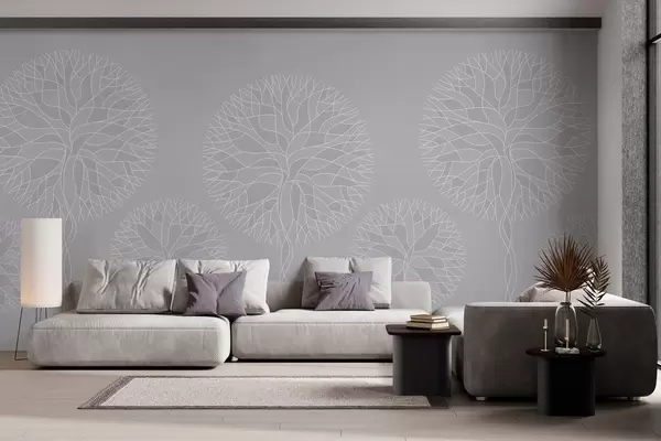 Zidne murale Fantastična linearna stabla s bujnim krošnjama u svijetlo sivim tonovima br. w05213v4