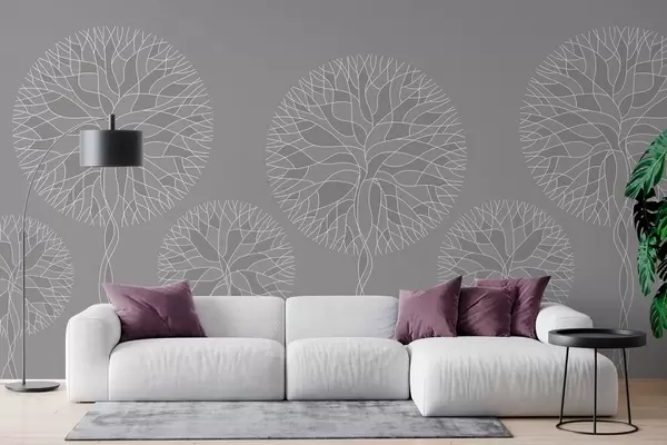 Zidne murale Fantastična linearna stabla s bujnim krošnjama u srednje sivim tonovima br. w05213v5