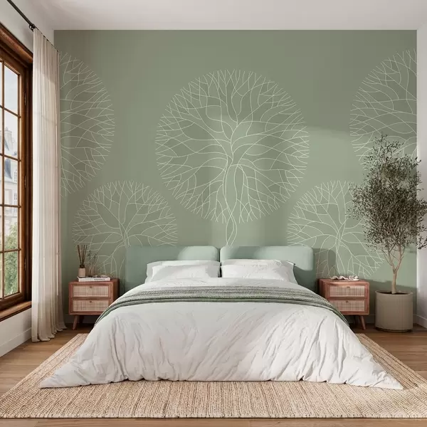 Zidne murale Fantastična linearna stabla s bujnim krošnjama u svijetlozelenim tonovima br. w05213v6