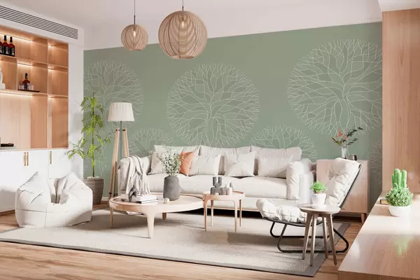 Zidne murale Fantastična linearna stabla s bujnim krošnjama u svijetlozelenim tonovima br. w05213v6