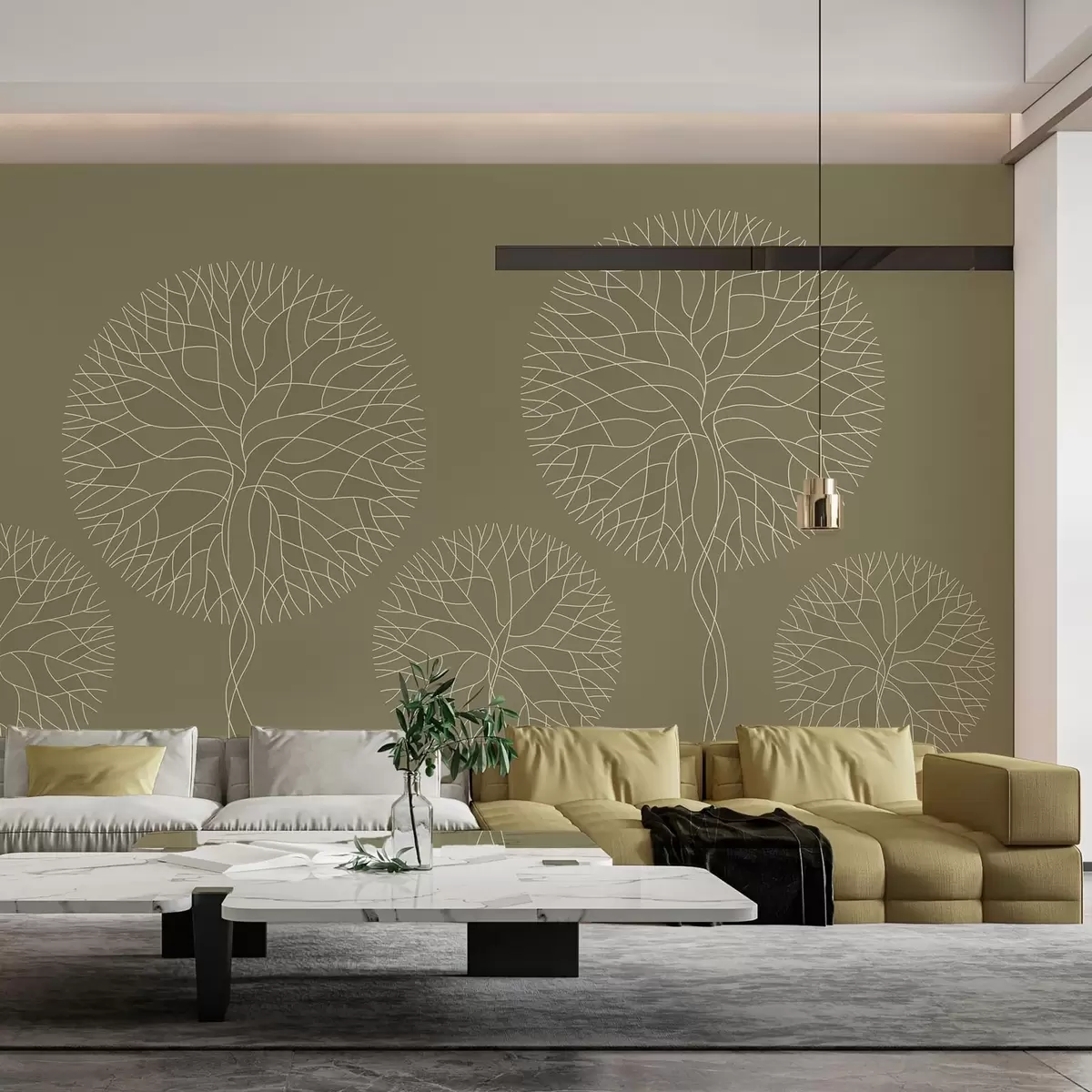 Zidne murale Fantazijska linearna stabla s bujnim krošnjama u kaki tonovima br. w05213v7