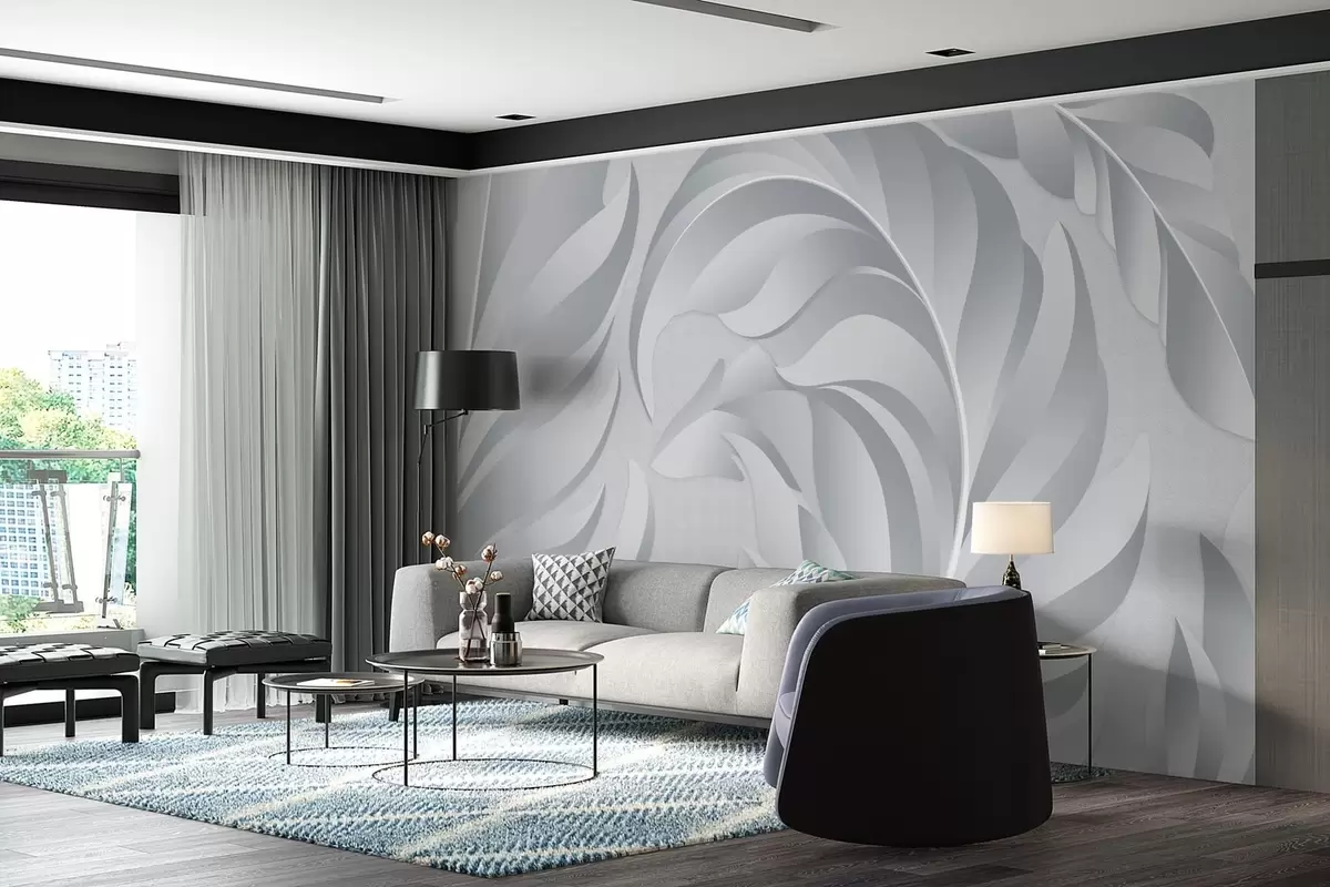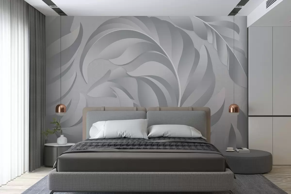 Zidne murale velika teksturirana perja u nijansama sive br. w05231v3