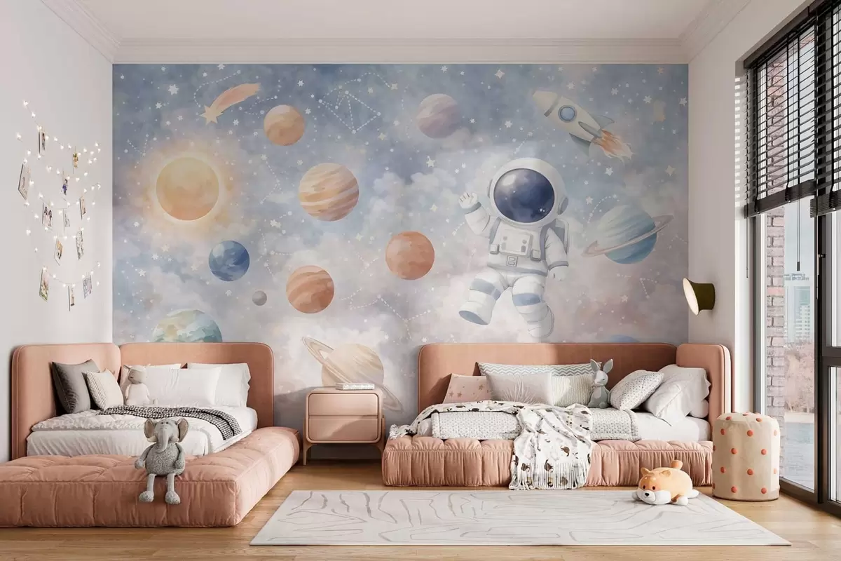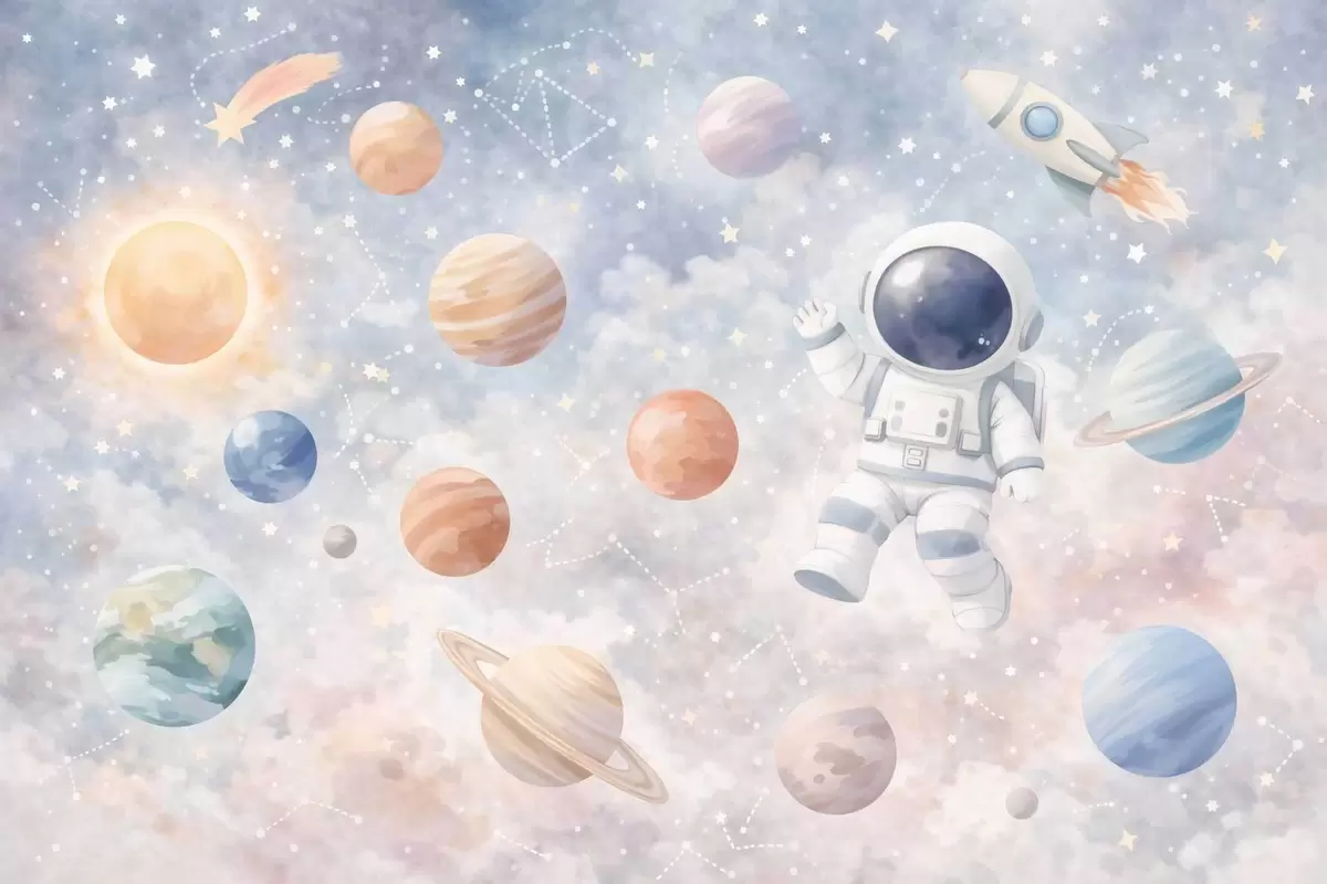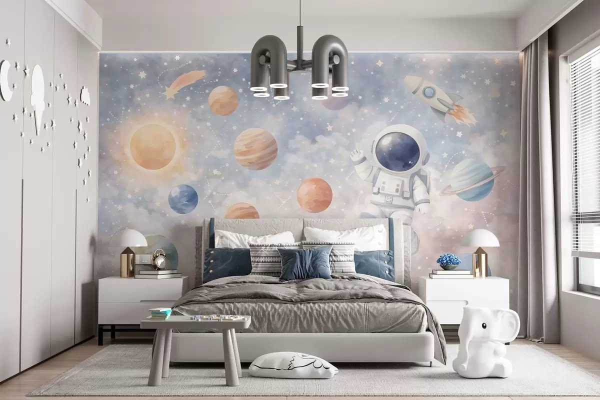 Zidne murale mali astronaut među planetima i zvijezdama br. w05233