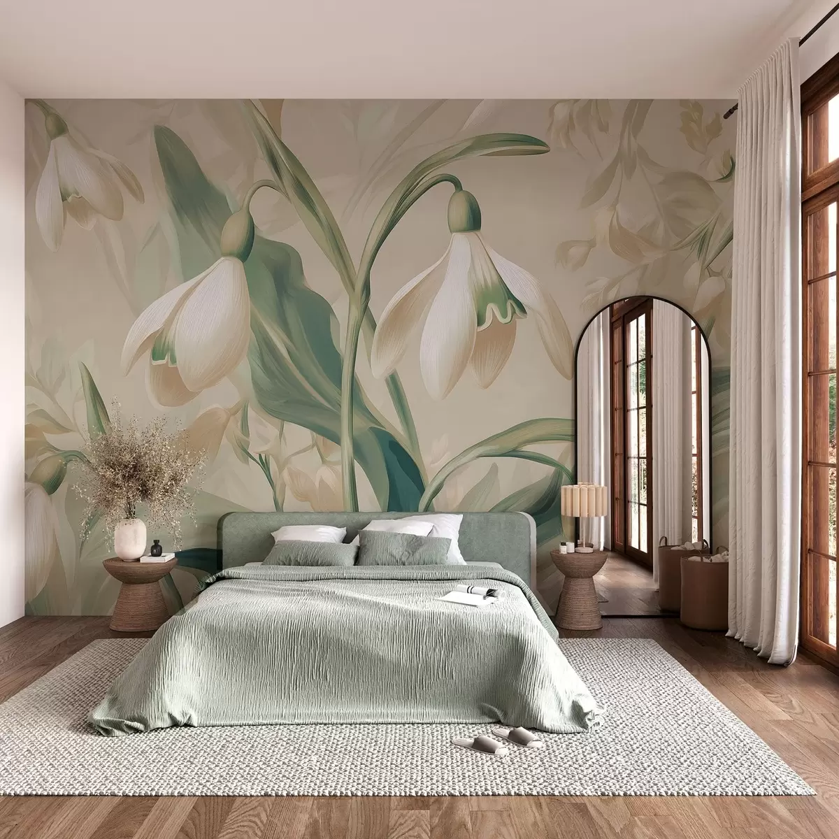 Zidne murale cvjetajuće visibabe na bež pozadini br. w05234