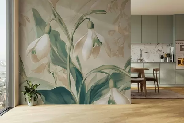 Zidne murale cvjetajuće visibabe na bež pozadini br. w05234