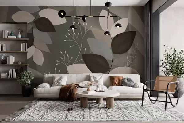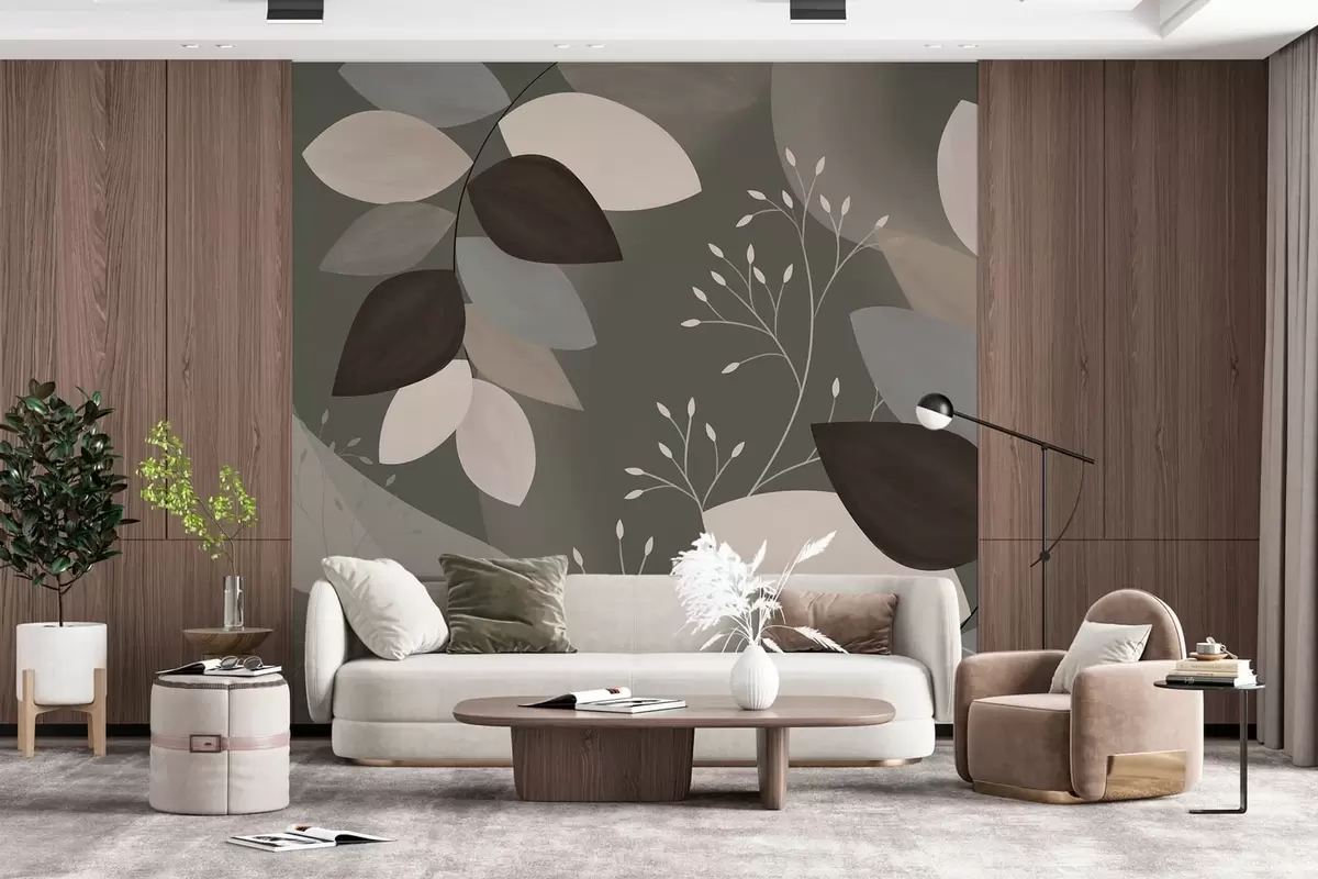 Zidne murale lišće i trave u tamnim nijansama br. w05237v1