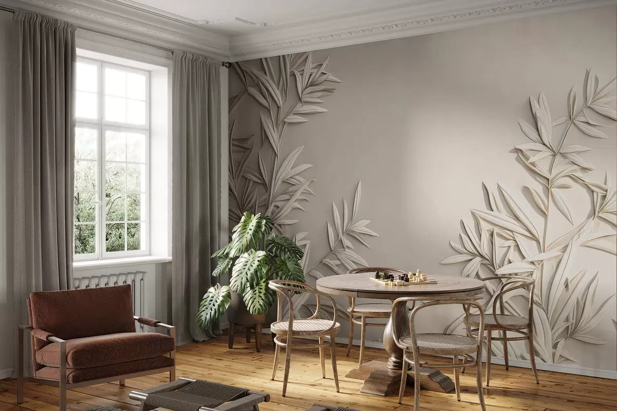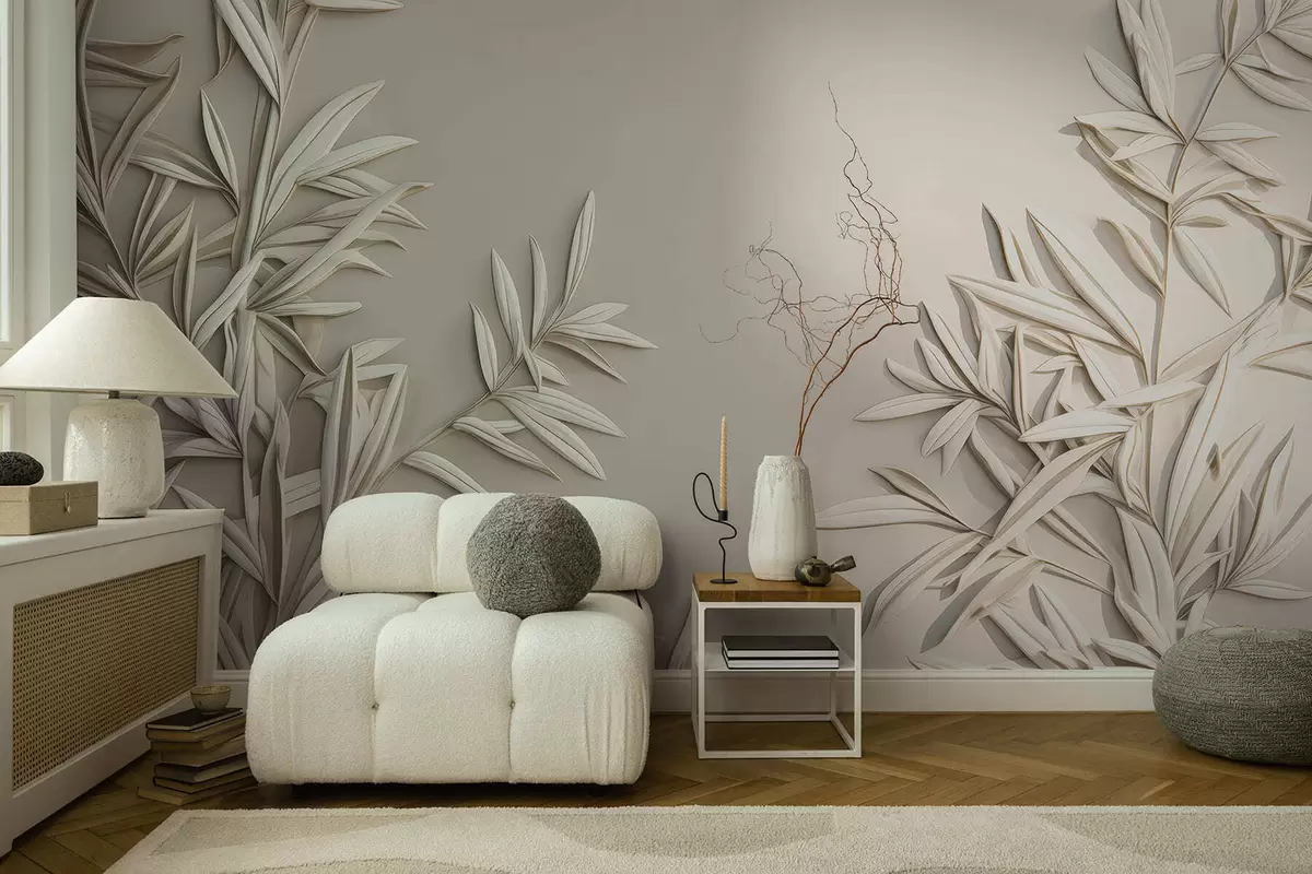 Zidne murale Imitacija lišća u bareljefu br. w05244