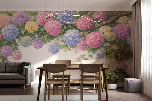 Zidne murale Oslikane hortenzije vise prema dolje br. w05250