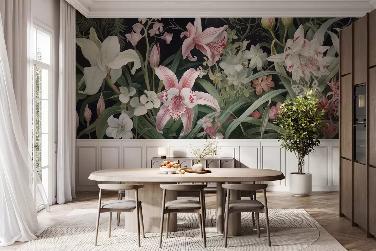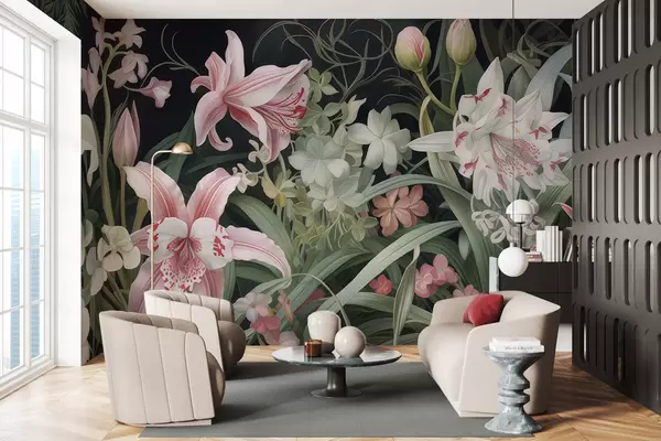 Zidne murale Fantastično cvijeće na tamnoj pozadini br. w05278