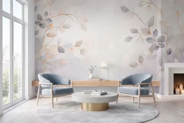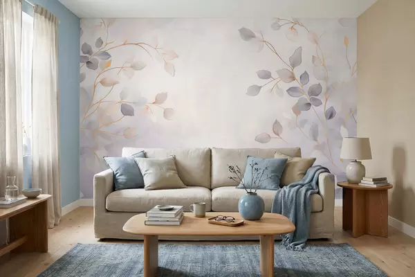 Zidne murale Nježne lisnate grane na mekoj zamućenoj pozadini br. w05296