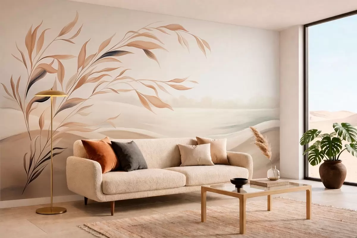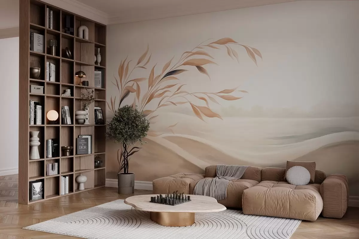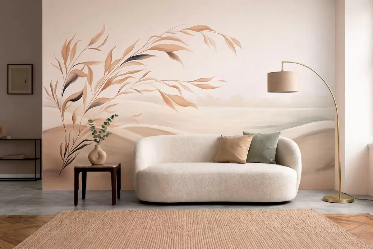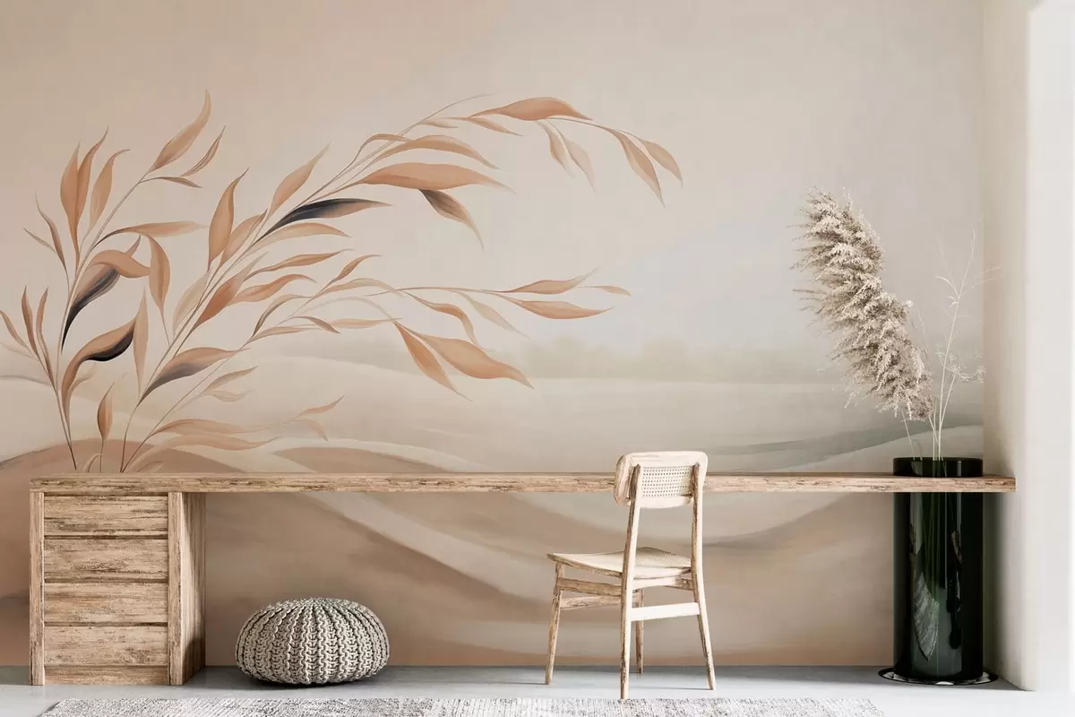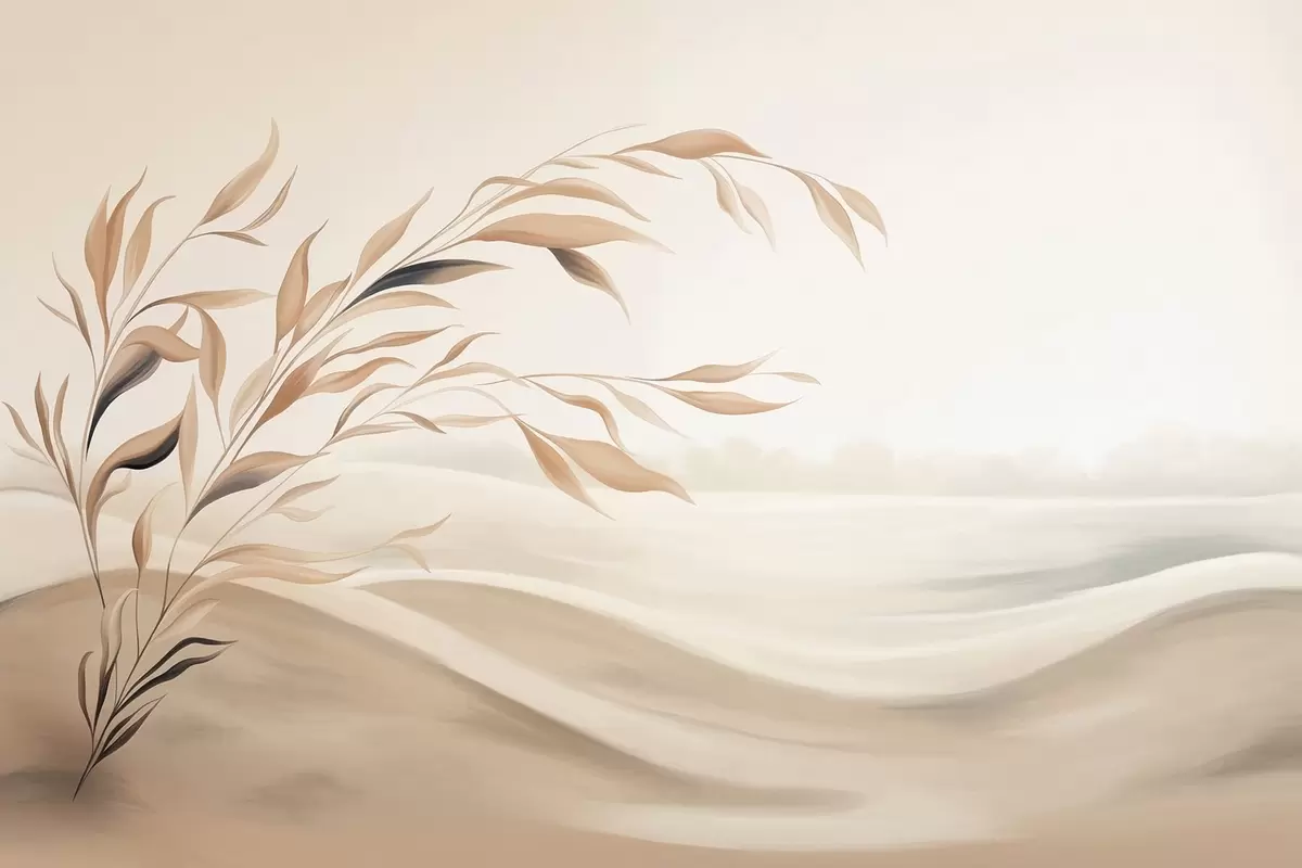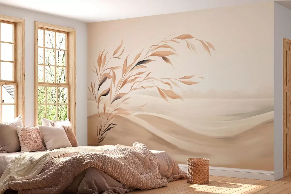 Zidne murale Meki krajolik s granom iznad brda u svijetlim bež tonovima br. w05297