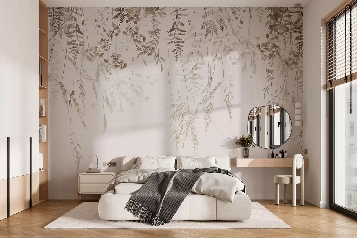 Zidne murale Viseće divlje biljke na svijetloj pozadini br. w05320