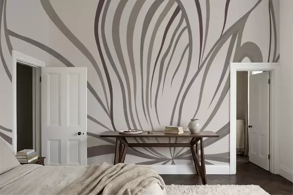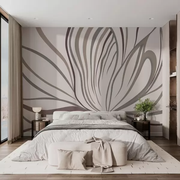 Zidne murale Apstraktni cvijet s linijama u sivim i ružičastim tonovima br. w05392
