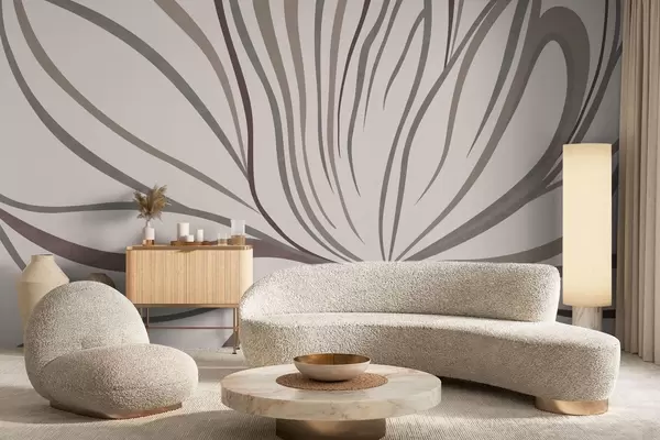 Zidne murale Apstraktni cvijet s linijama u sivim i ružičastim tonovima br. w05392