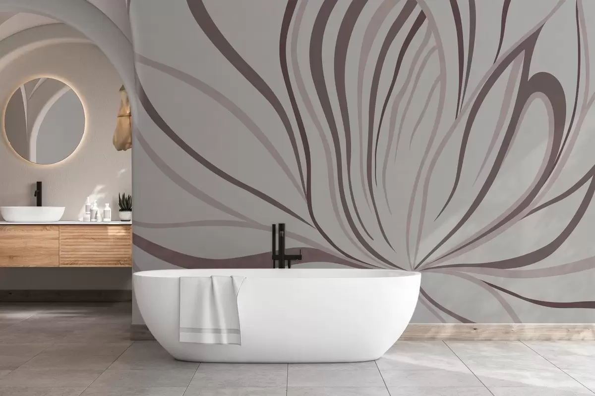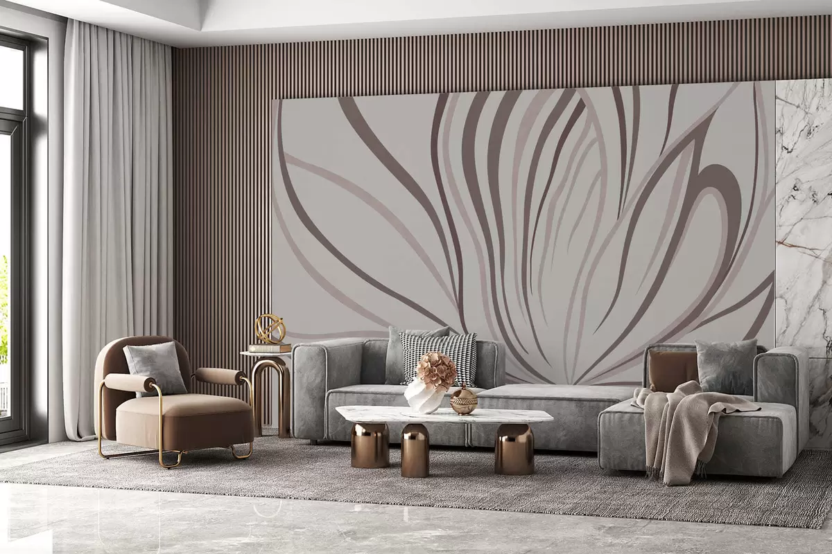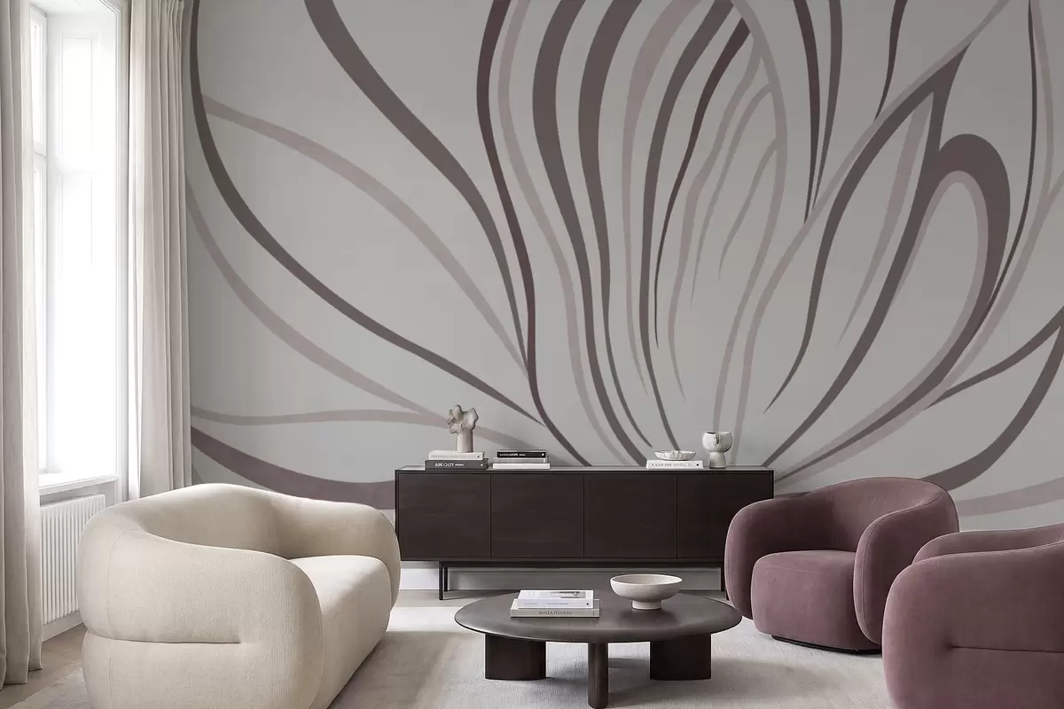 Zidne murale Stilizirani cvijet s mekim linijama u ružičasto-bež tonovima br. w05392v1