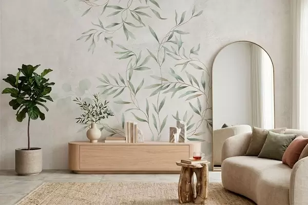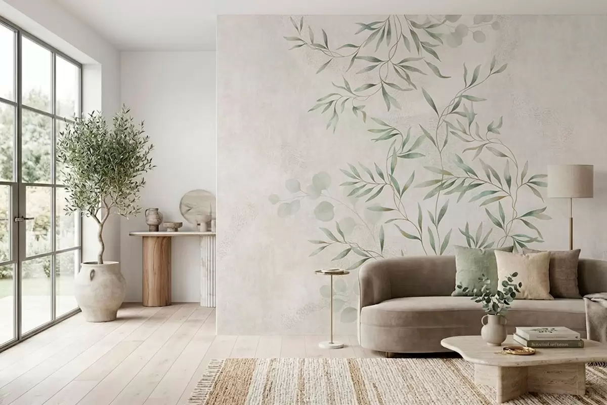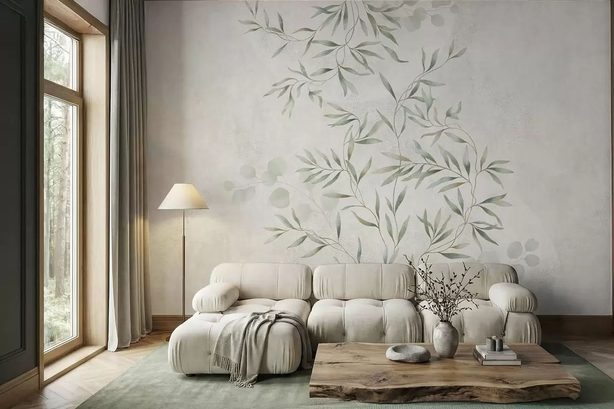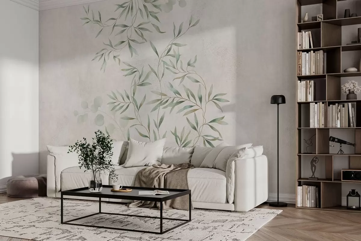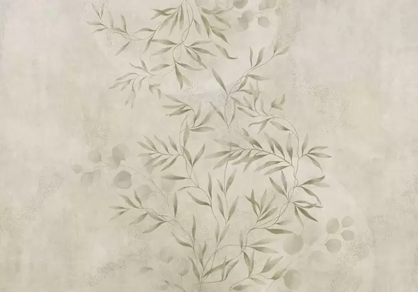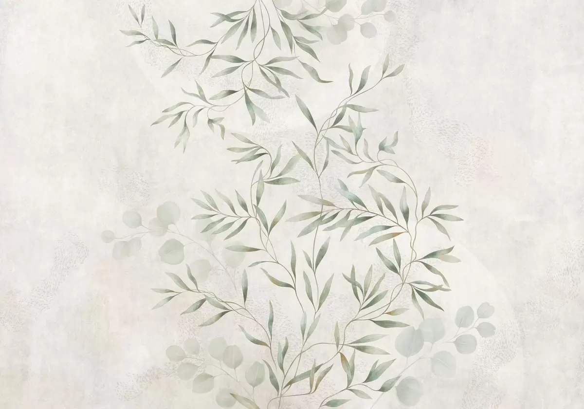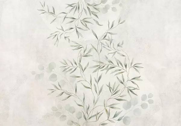 Zidne murale Nježan botanički uzorak s tankim grančicama na svijetloj pozadini br. w05424
