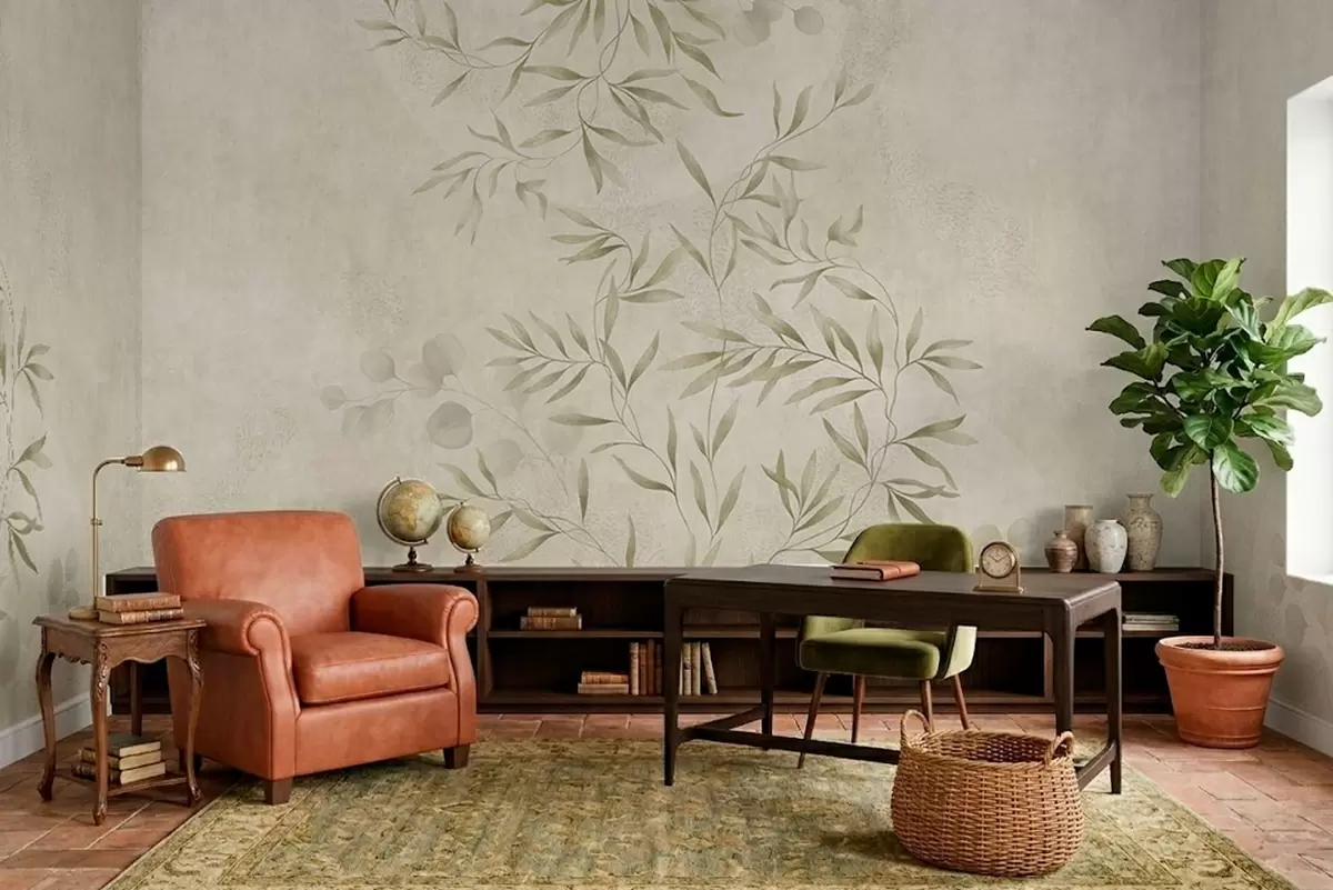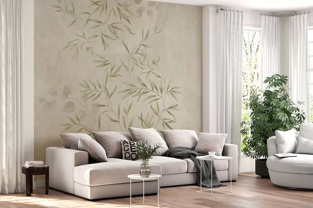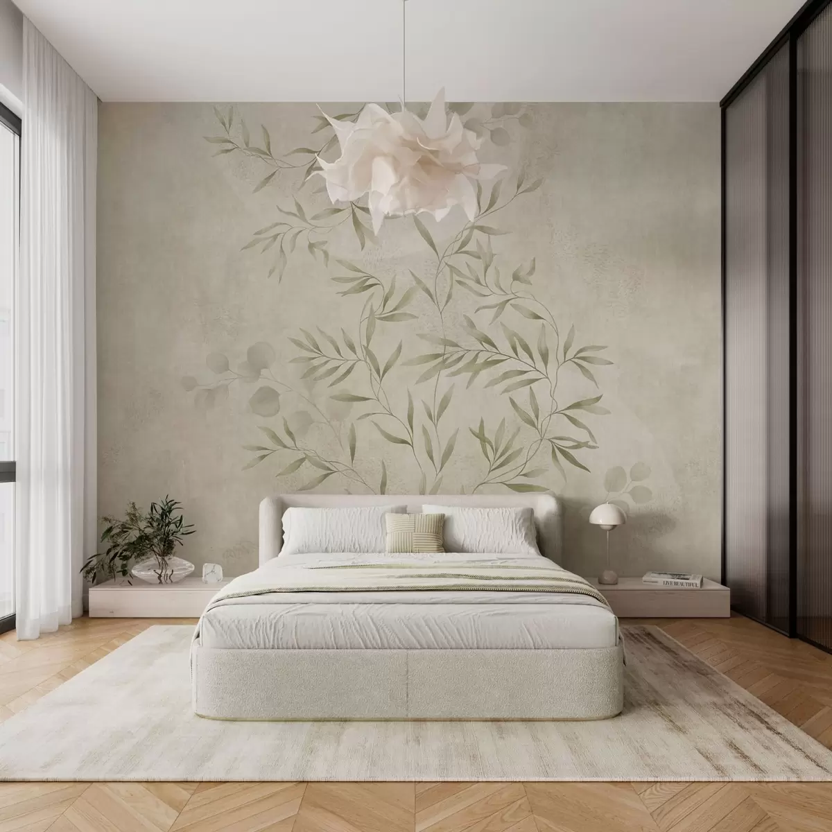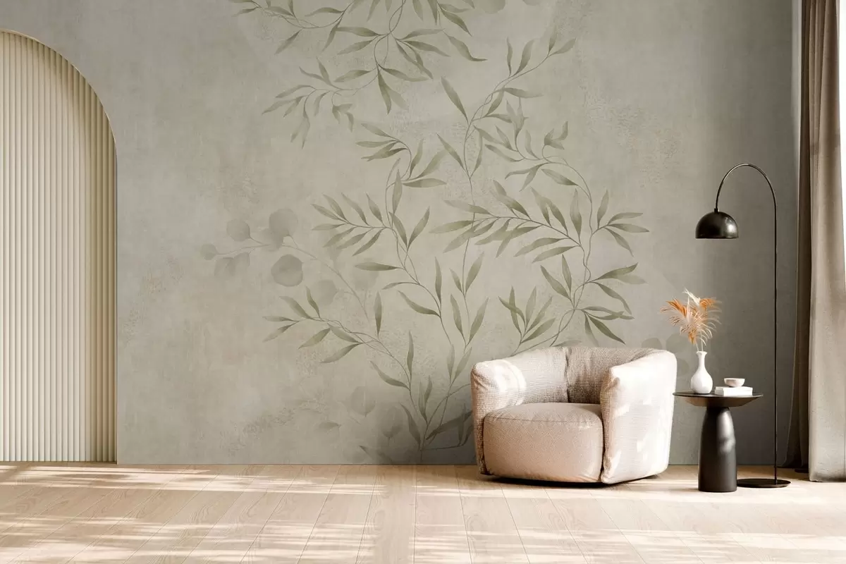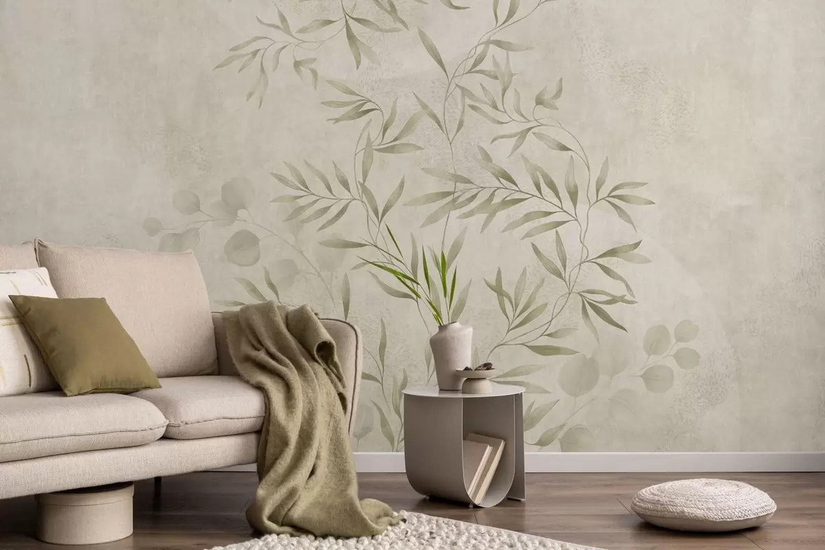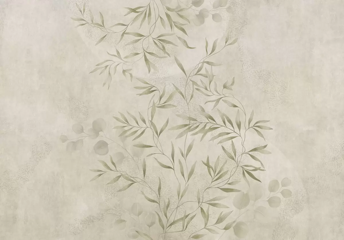 Zidne murale Botanički uzorak u svijetlozelenim tonovima na teksturiranoj pozadini br. w05424v1