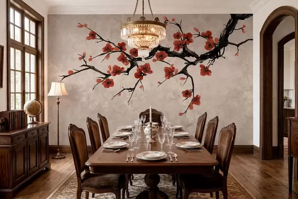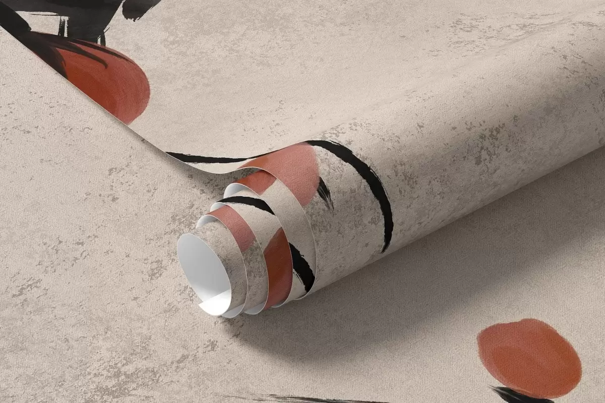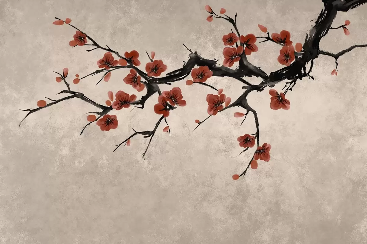 Zidne murale Cvjetna grana u istočnjačkom stilu na bež pozadini br. w05425v4