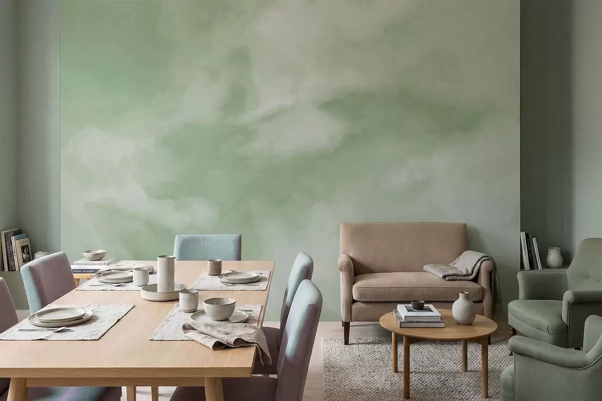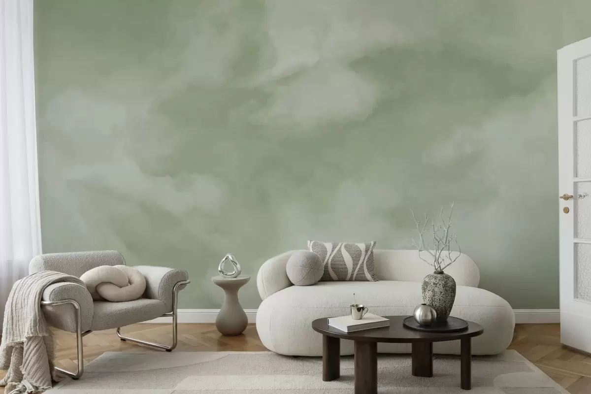Zidne murale Meka oblačna pozadina u nježnim zelenim tonovima br. w05426v2