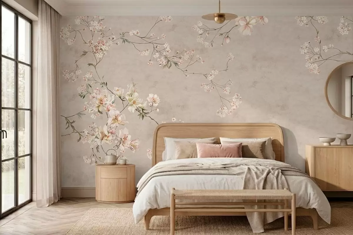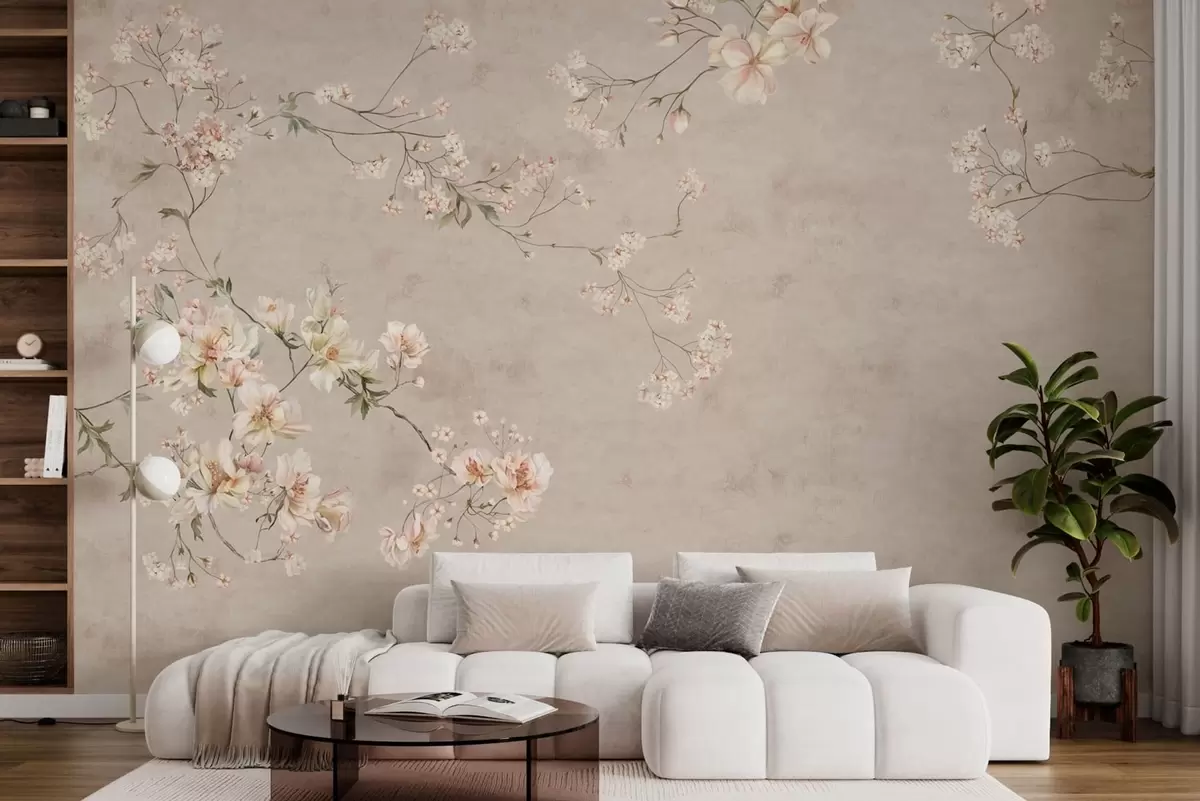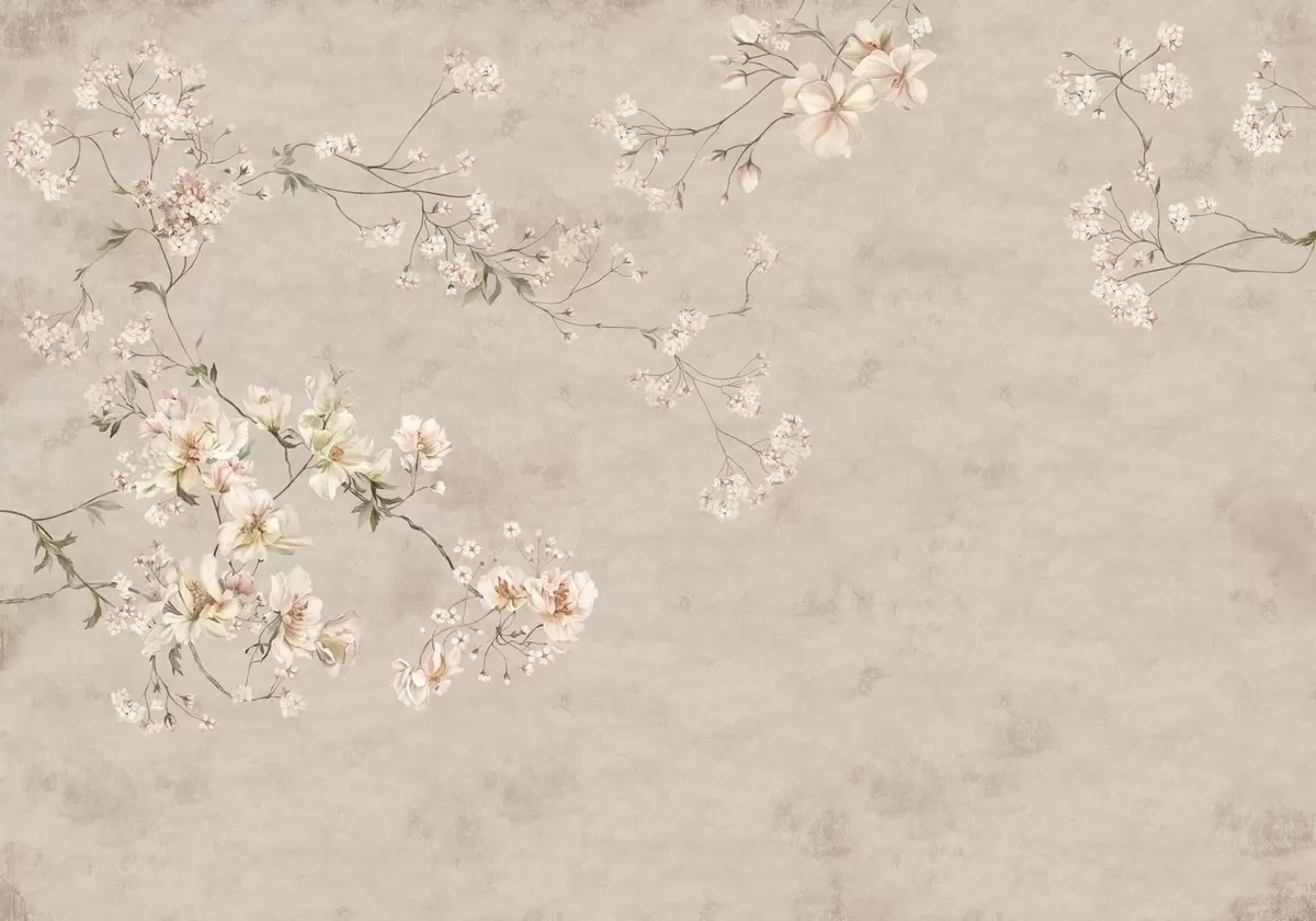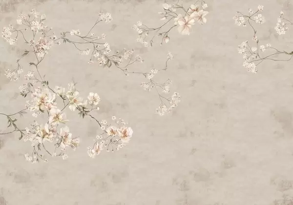 Zidne murale Nježne cvjetne grančice kineskog stila na svijetloj pozadini br. w05427