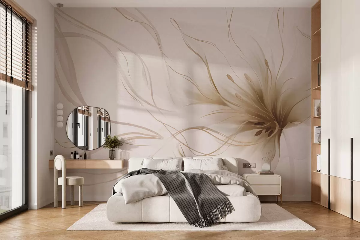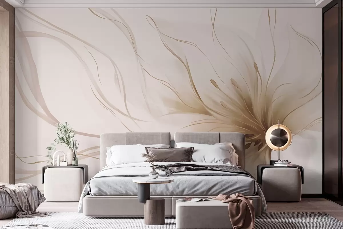 Zidne murale Apstraktni bež cvijet s tekućim linijama u stilu fluidne umjetnosti br. w05428v2
