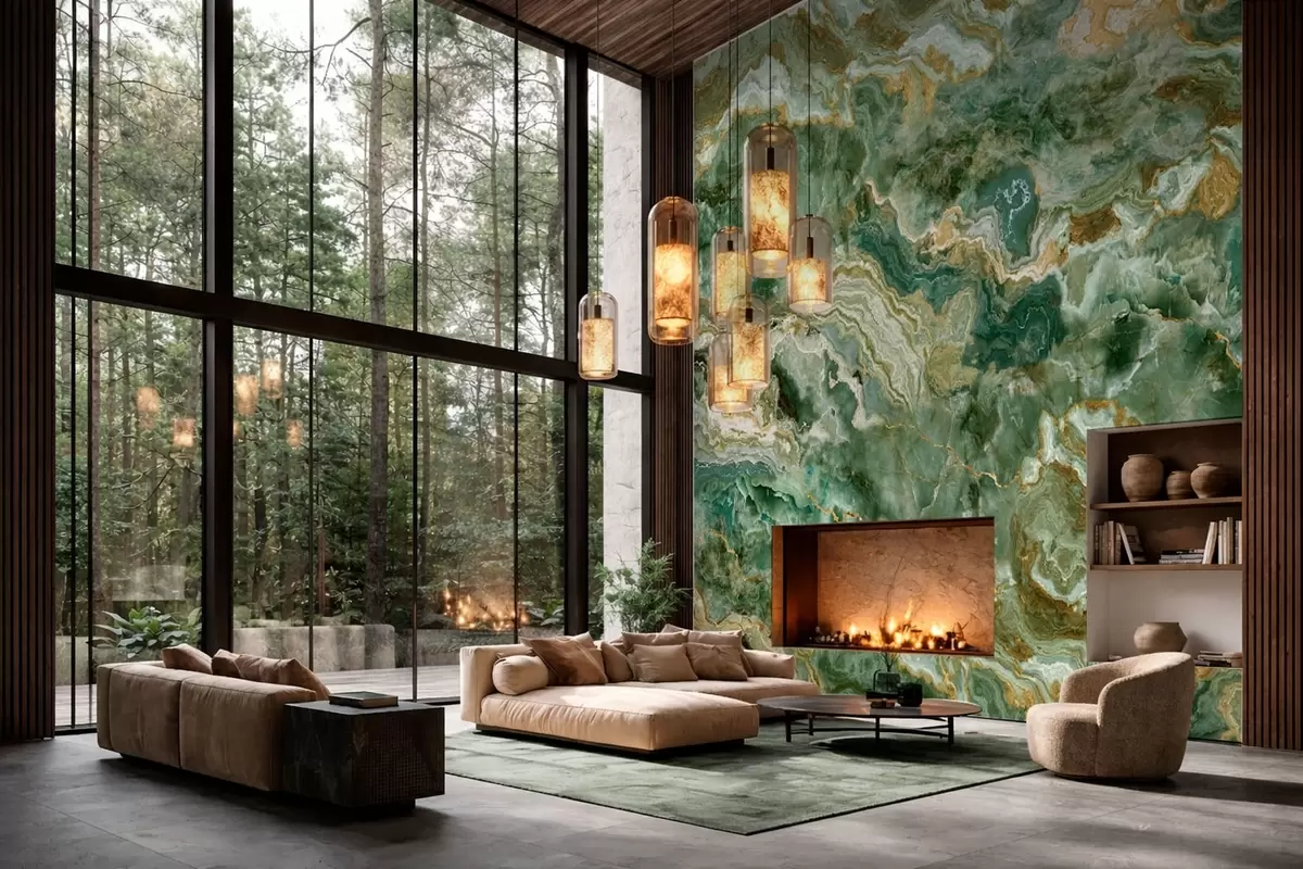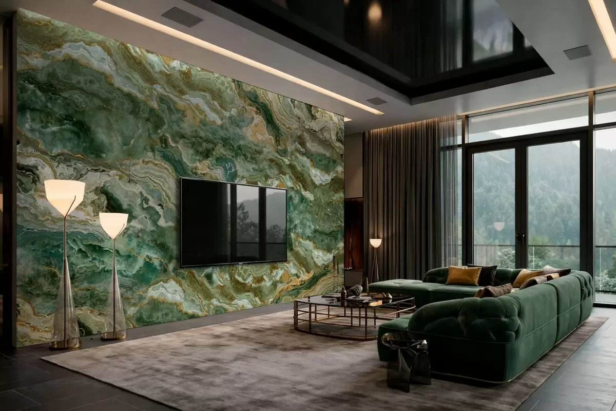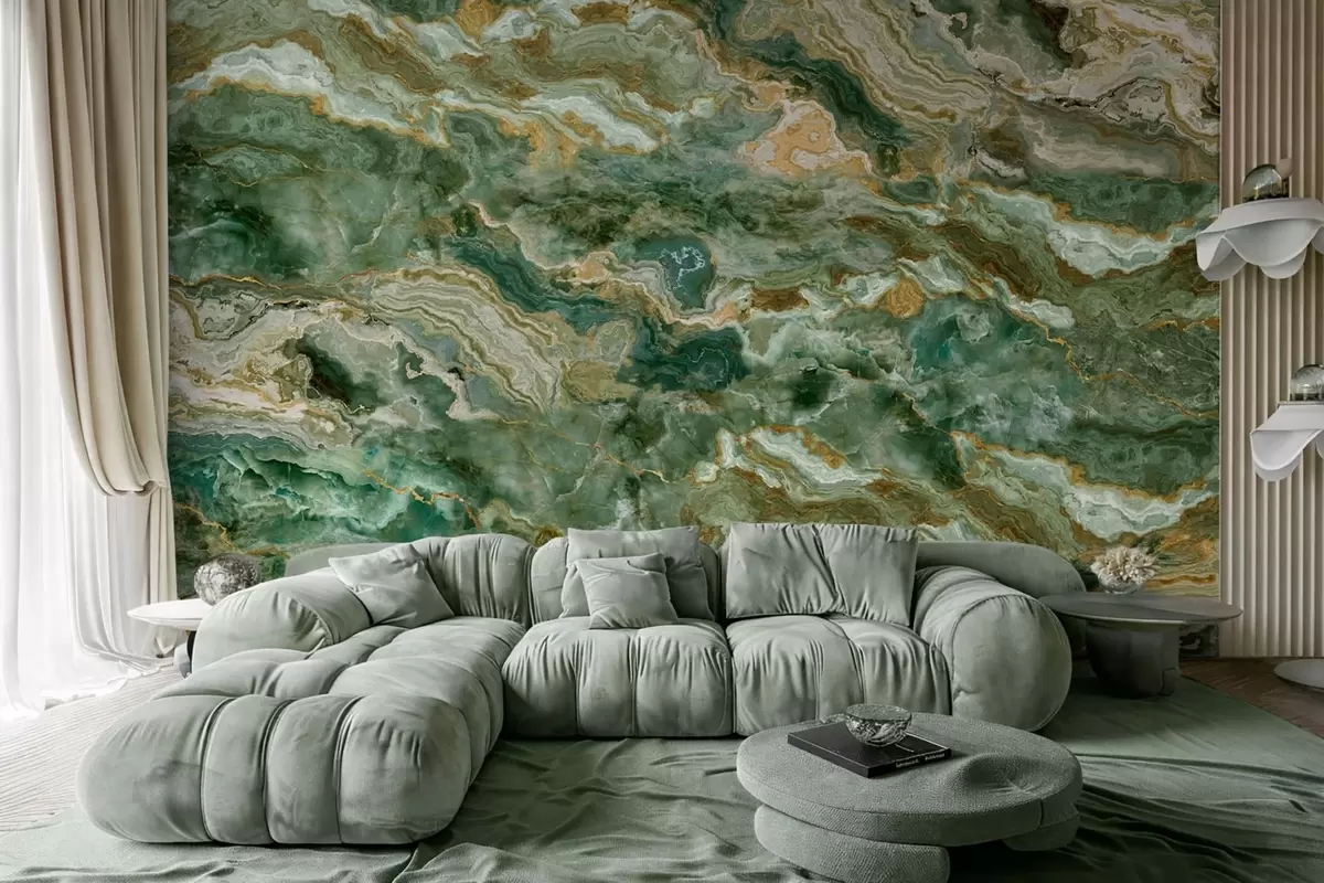 Zidne murale Tekstura zelenog oniksa s tekućim slojevitim žilama br. w05429