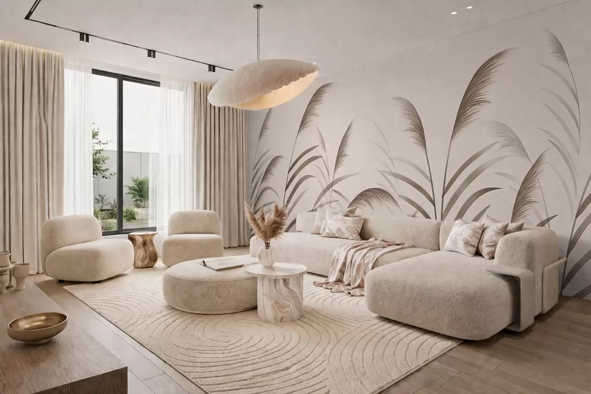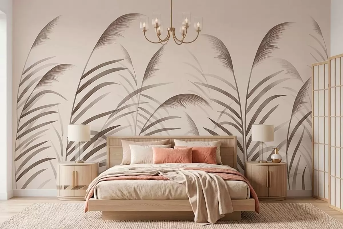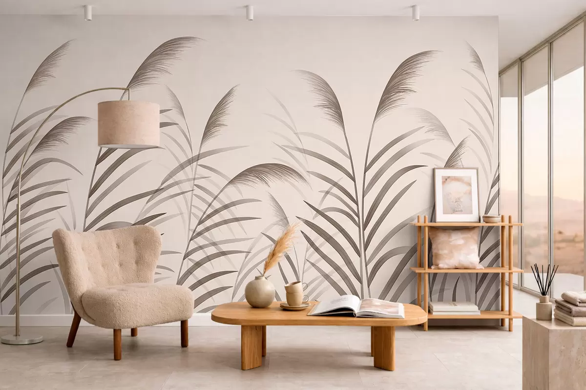 Zidne murale Minimalističke siluete trske u bež tonovima br. w05432