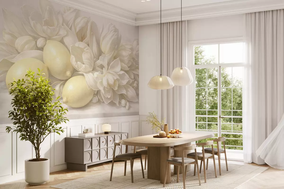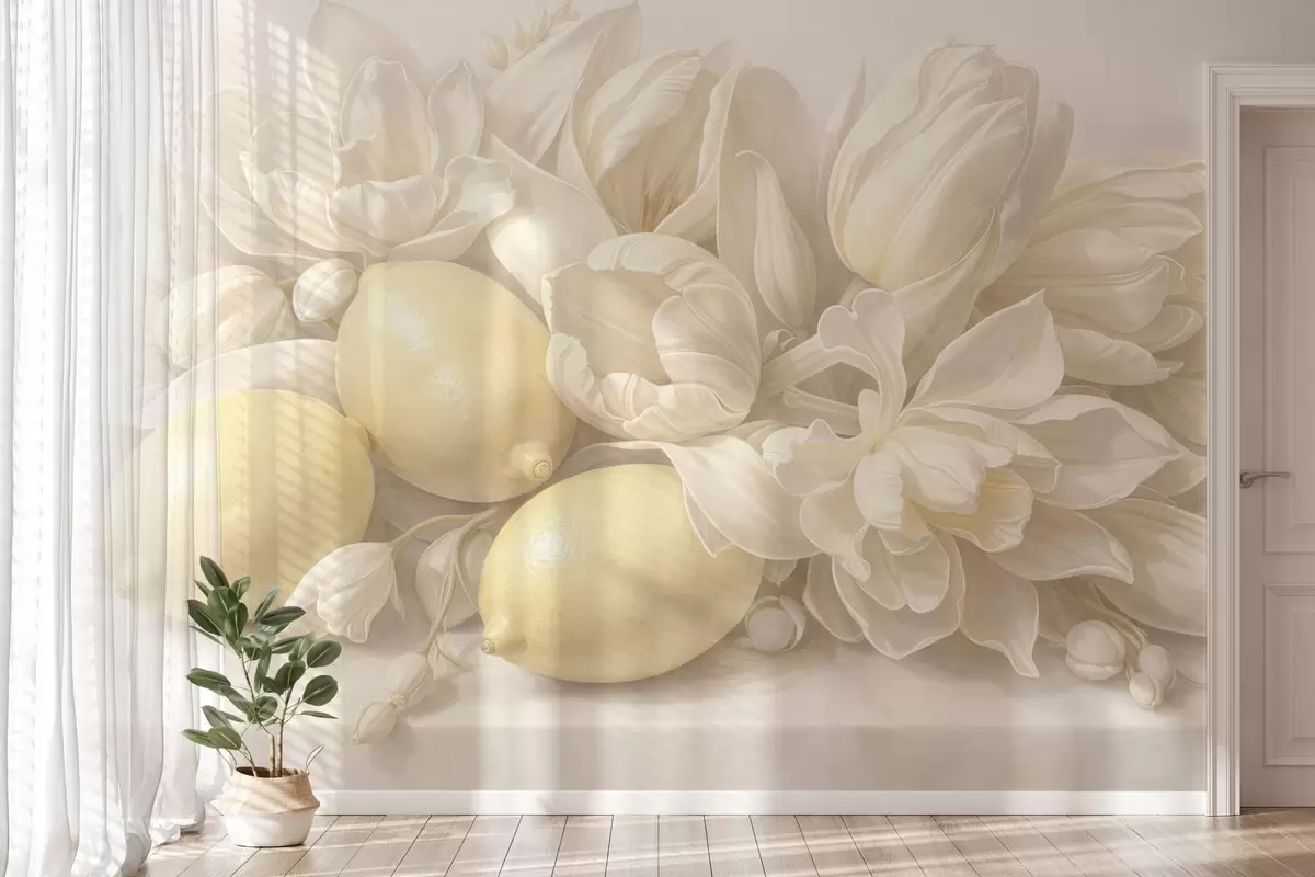 Zidne murale Nježan cvjetni buket s limunima br. w05449