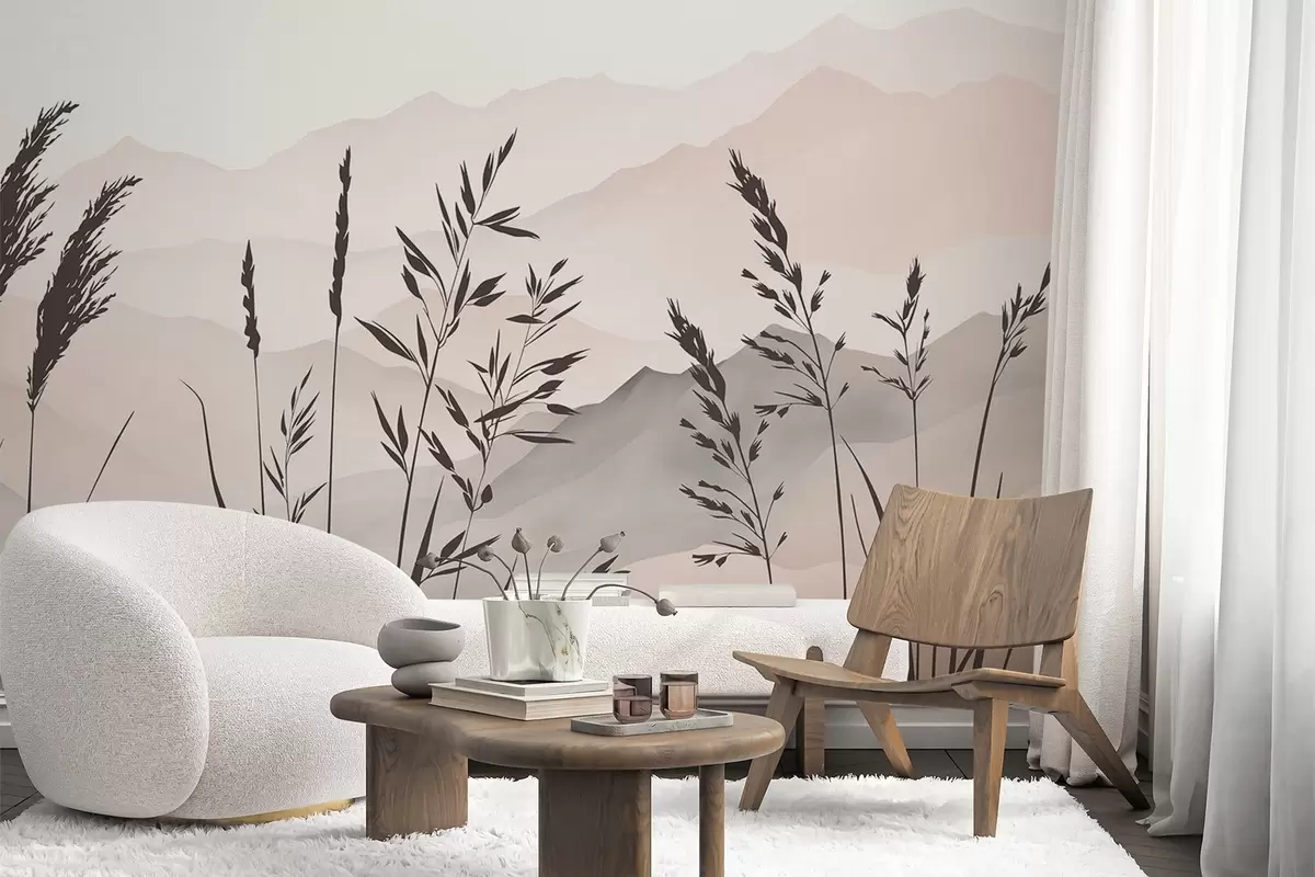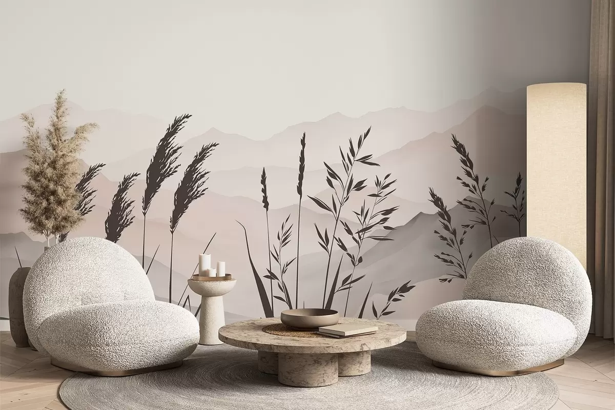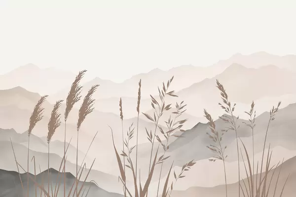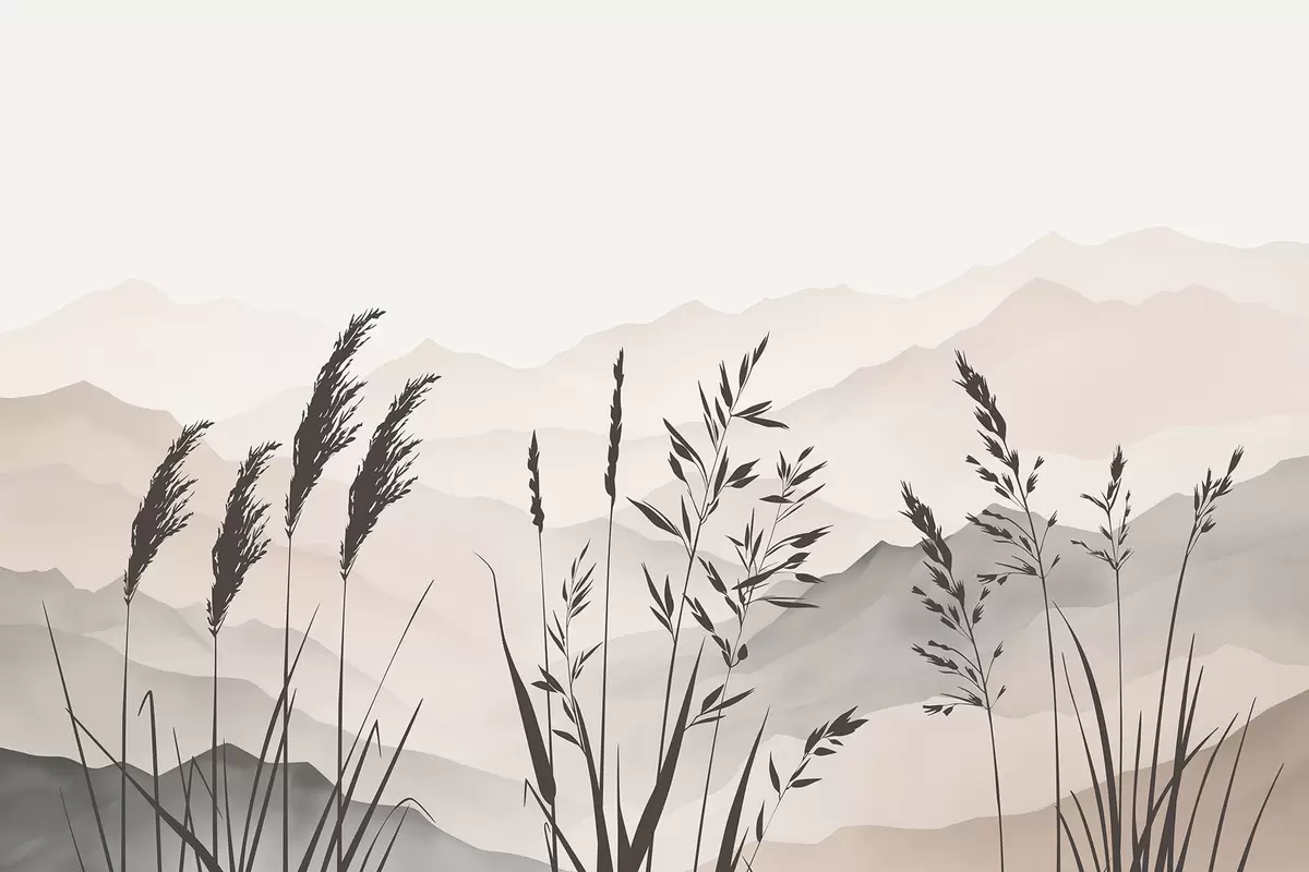 Zidne murale Siluete trave na pozadini planina br. w05501