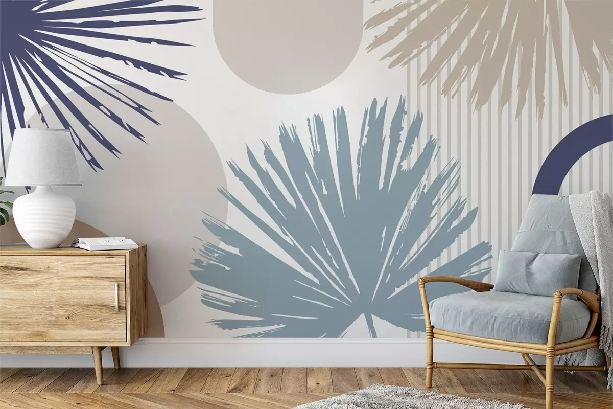 Zidne murale Apstrakcija s biljnim i geometrijskim siluetama br. w05505v1