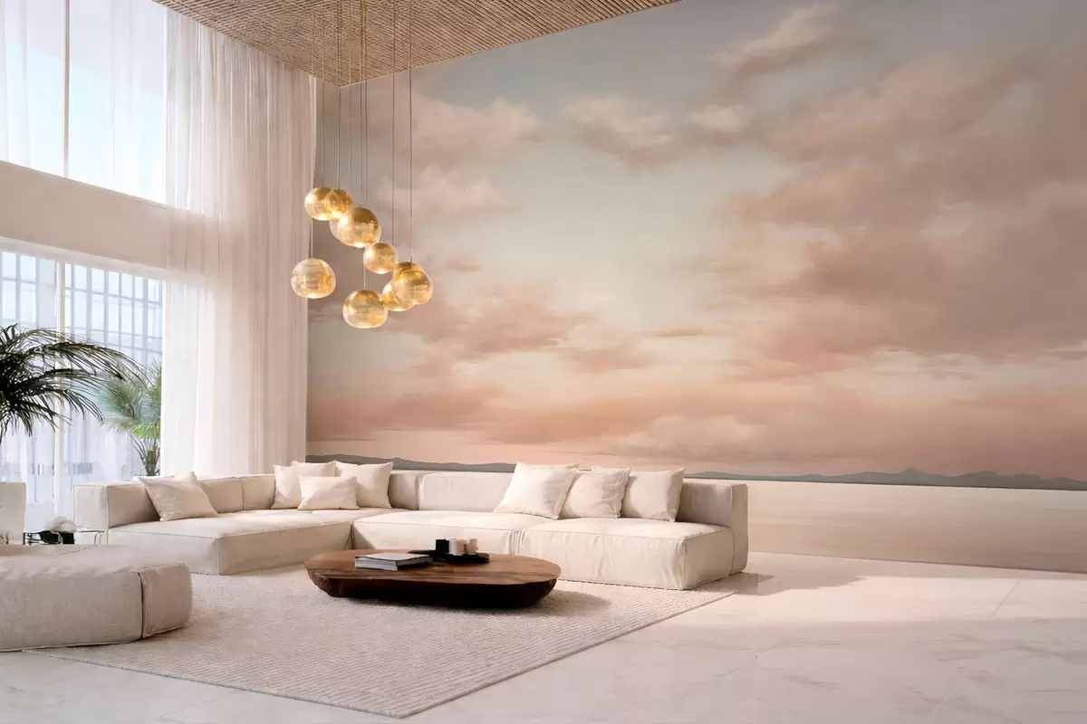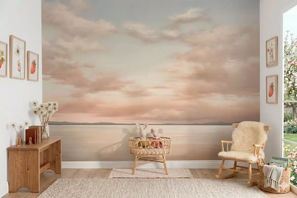 Zidne murale Minimalistički morski horizont s pastelnim oblacima br. w05516