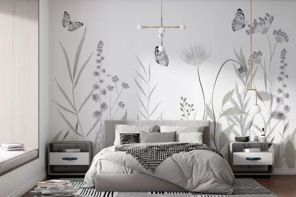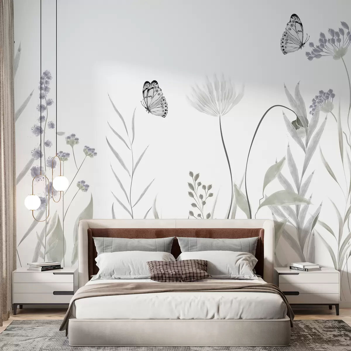 Zidne murale Divlje cvijeće i leptiri br. w08052