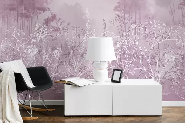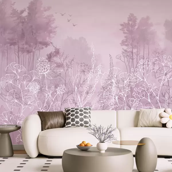 Zidne murale Crtanje cvijeća, šumski krajolik, priroda, realizam, paleta ružičastih boja br. w08144v3