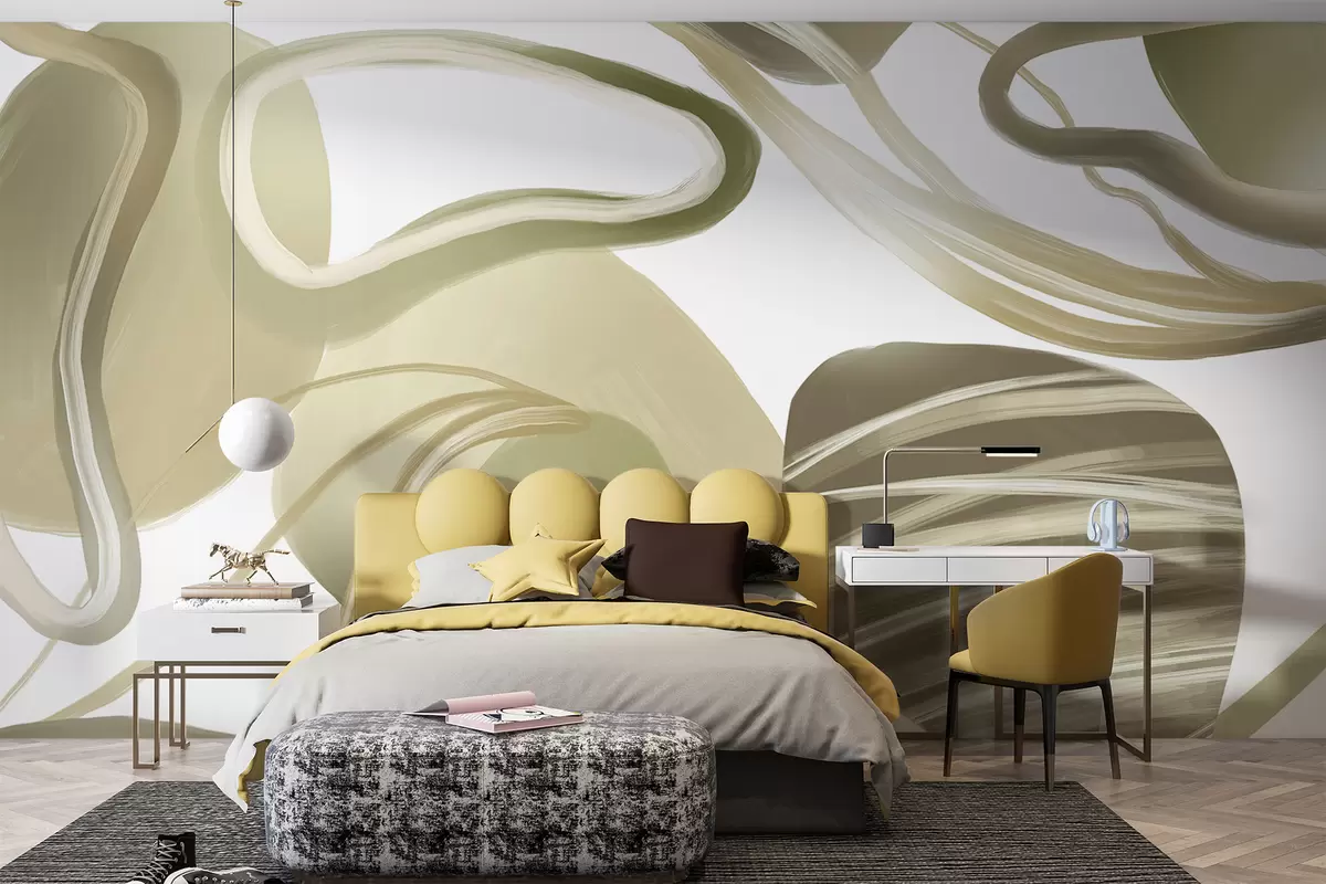 Zidne murale Apstraktni uskovitlani oblici i krivulje u nijansama bež stvaraju dinamičnu i tečnu kompoziciju br. w08279