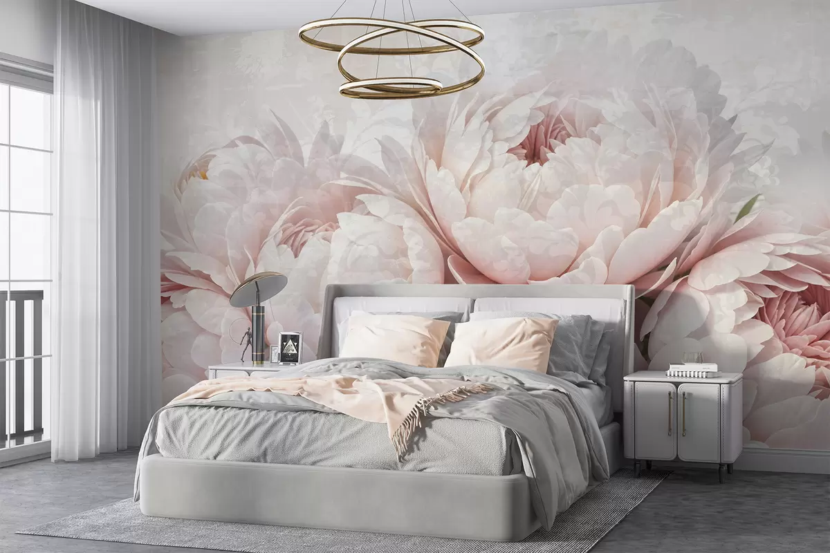 Zidne murale Nježno ružičasti božuri s nježnim laticama na vintage pozadini svijetle teksture br. w08312