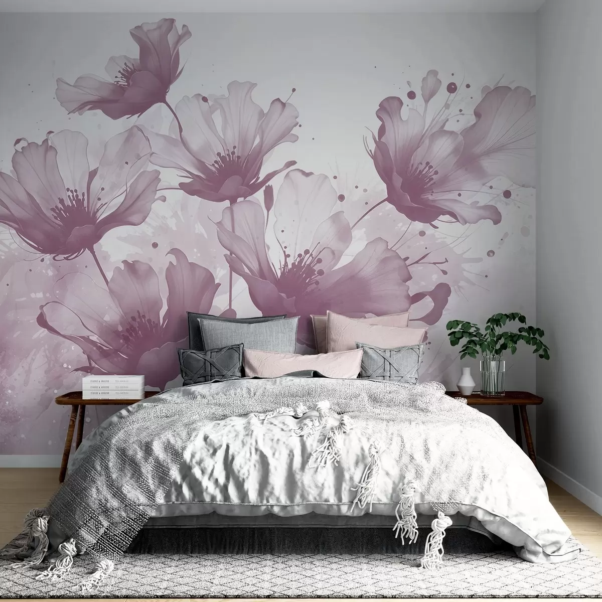 Zidne murale Nježni ružičasti cvjetovi s mekim, zamućenim laticama i mrljama akvarela na svijetloj pozadini br. w08376v2