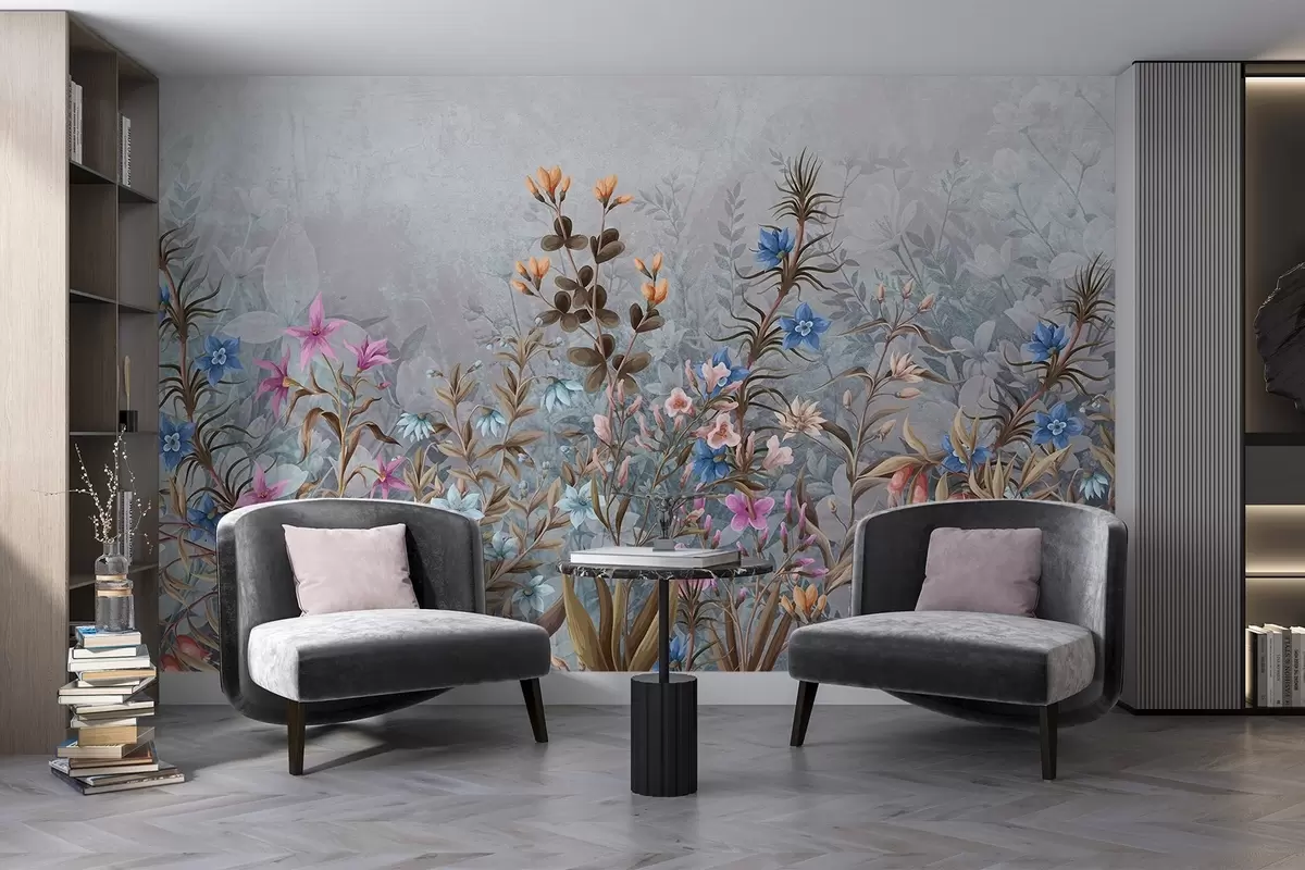 Zidne murale Bujni, živahni cvjetni teksturalni print sa šarenim cvijećem i biljkama sa složenim detaljima i teksturama br. w08428