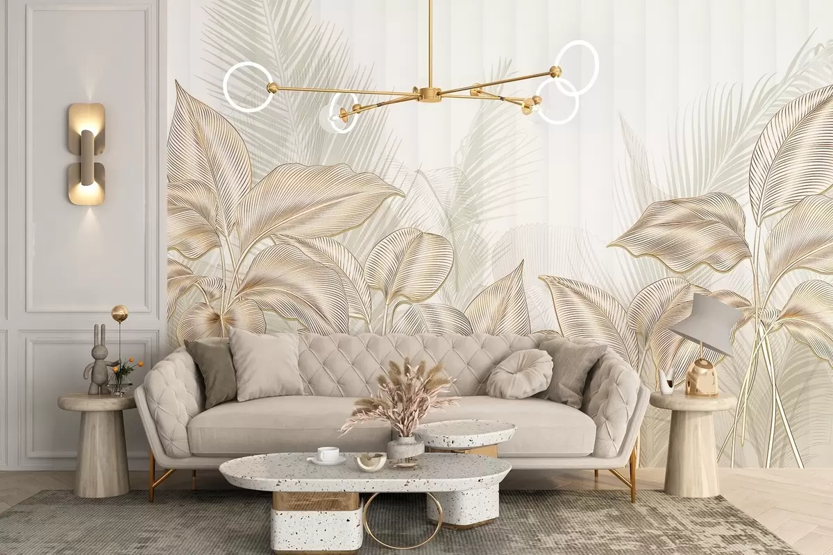 Zidne murale Elegantno bijelo i bež lišće palme na svijetloj, teksturiranoj pozadini br. w08434