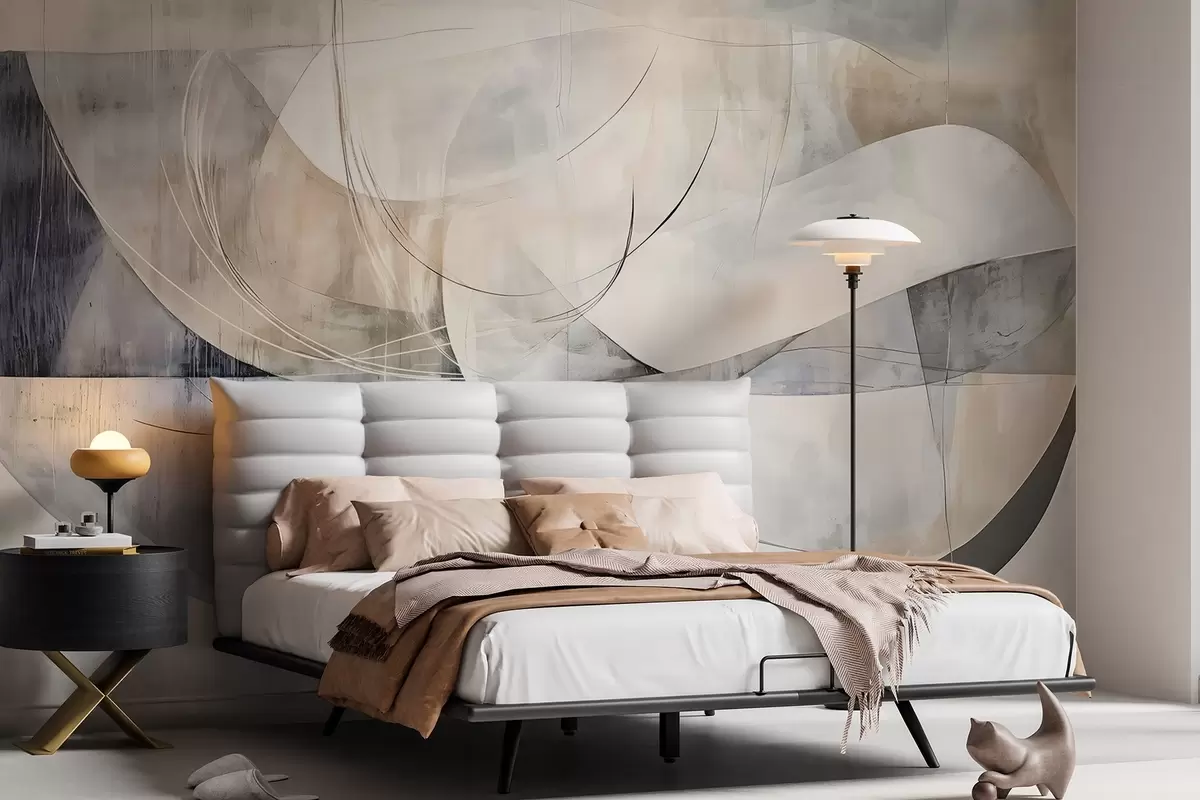 Zidne murale Apstraktni oblici i forme u nijansama bijele, sive, bež i plave na pozadini zamućene teksture br. w08461