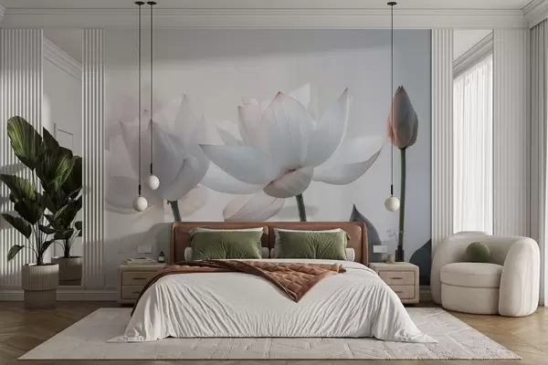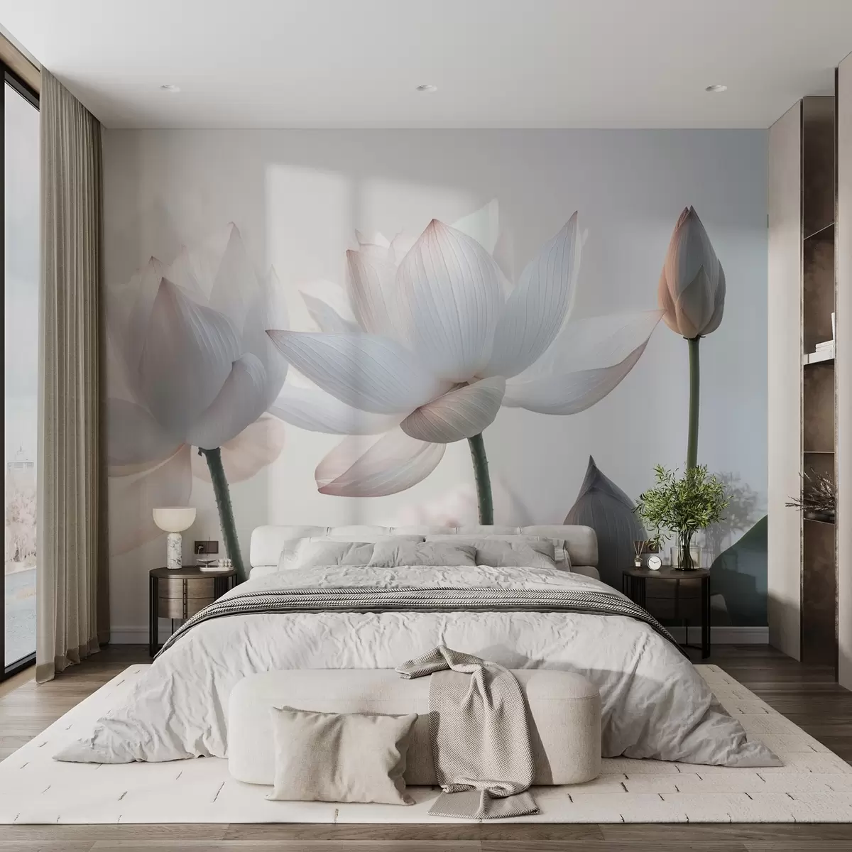 Zidne murale Nježni lotosovi cvjetovi s laticama i listovima br. w08488