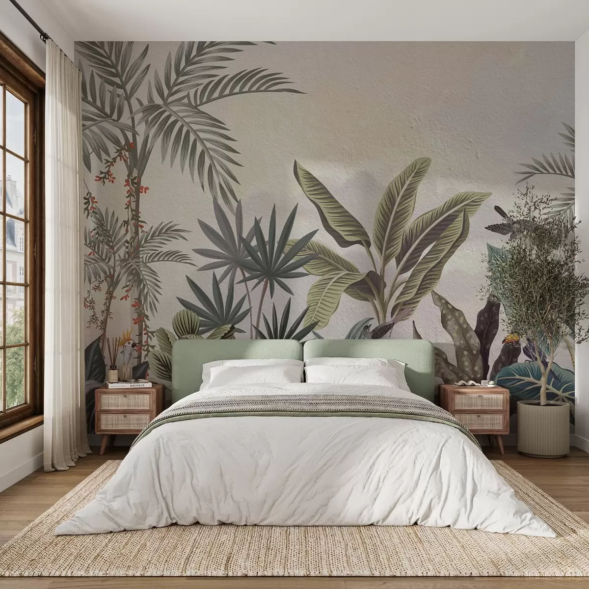 Zidne murale Tropska džungla s palmama i šarenim pticama br. w08496