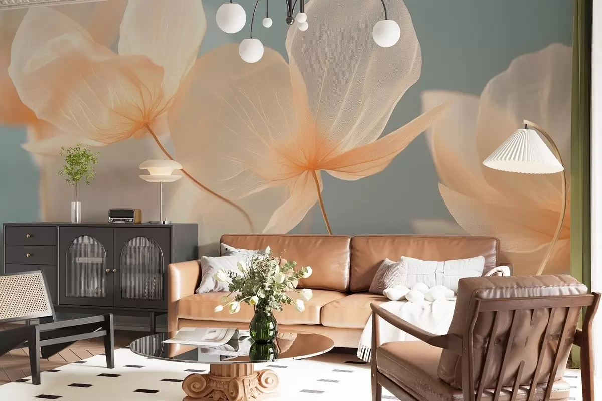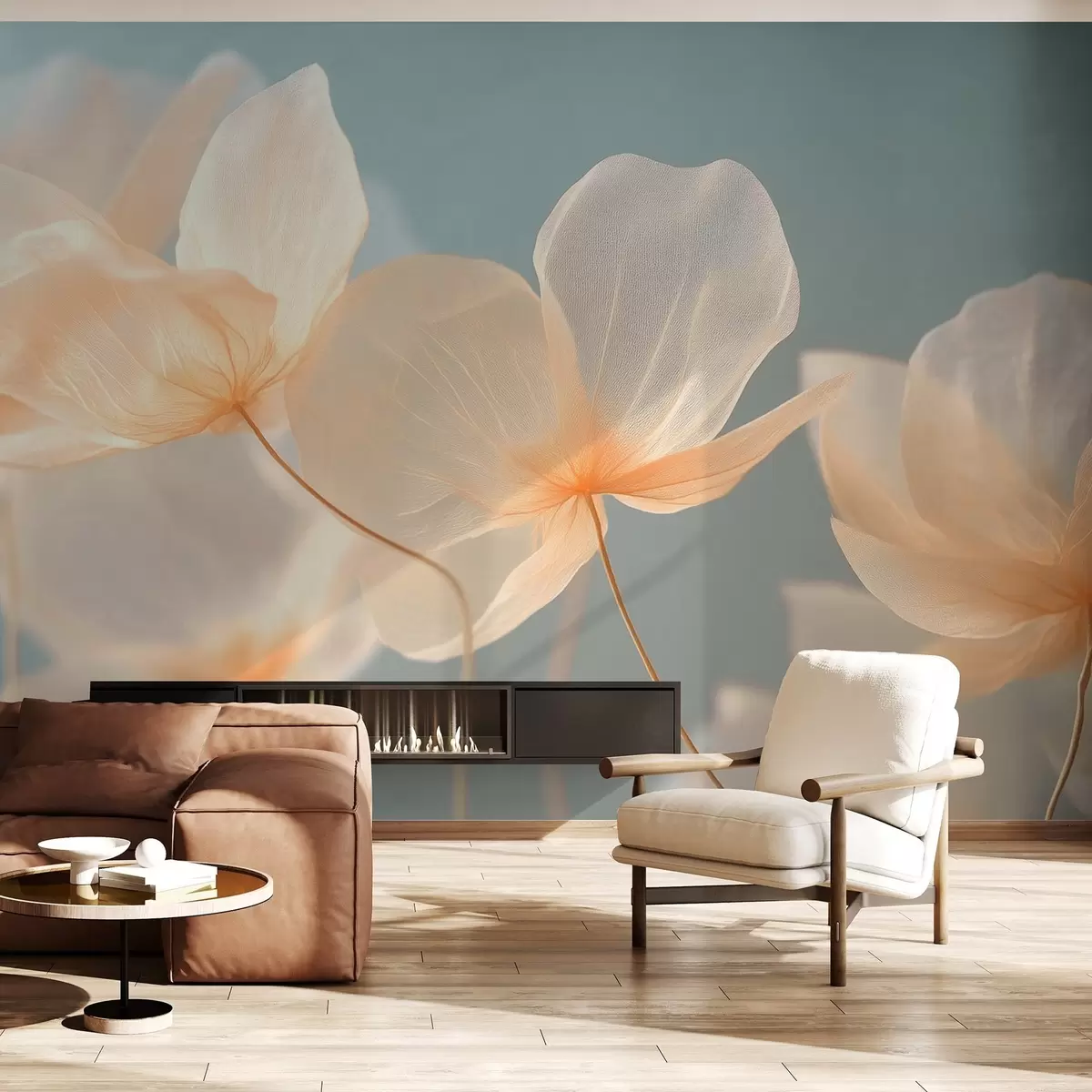 Zidne murale Latice lotosa, nježna kompozicija s plavom pozadinom br. w08500